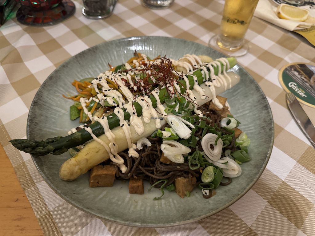 Mezze mit gebackenem Spargel, Feto und Hummus