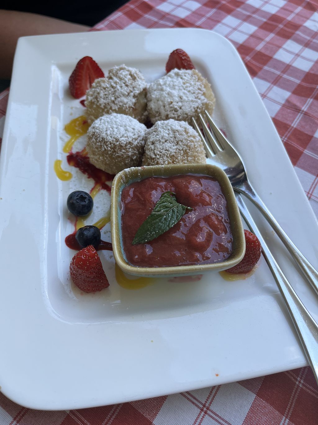 Eierschwammerl mit “Speck”würfel und Semmelknödel
