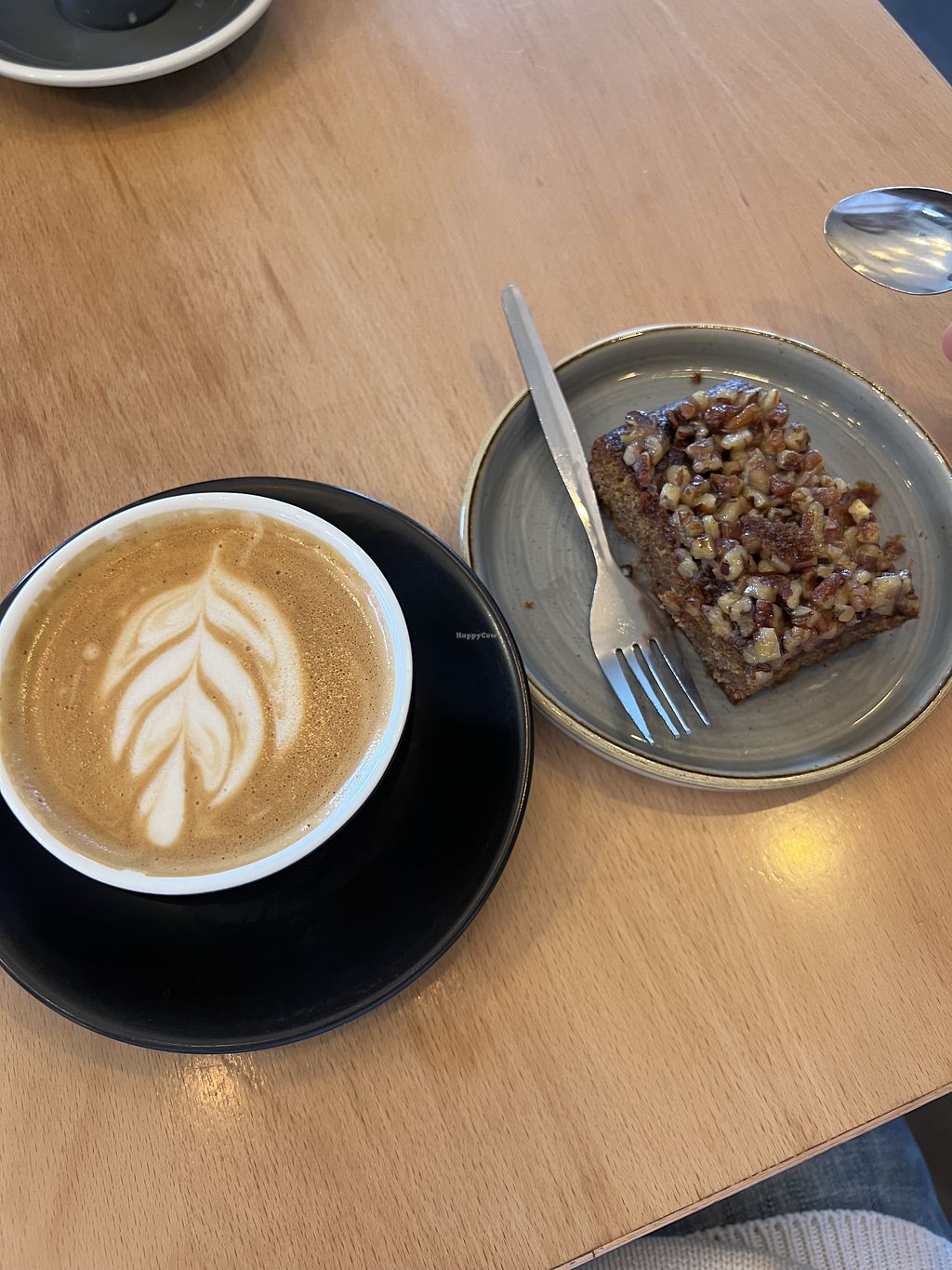 Oat milk latte—so well balanced and awesome. Really really enjoyable. They also have vegan pastries and vegan food (although the food is super pricey!!!). I had some toffee pastry that was really good!!