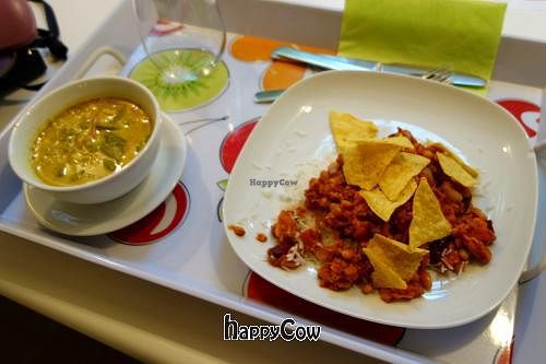Small nice and friendly place. I had the two vegan options of the day which were a Malaysian laksa (= spicy noodle) soup with coconut milk and a "chili con soya" with rice. Both were very good and the soup was one of the best soups I ever had.