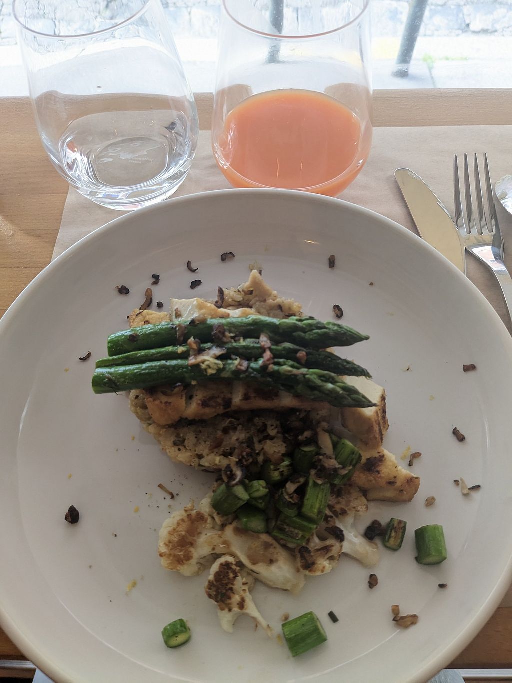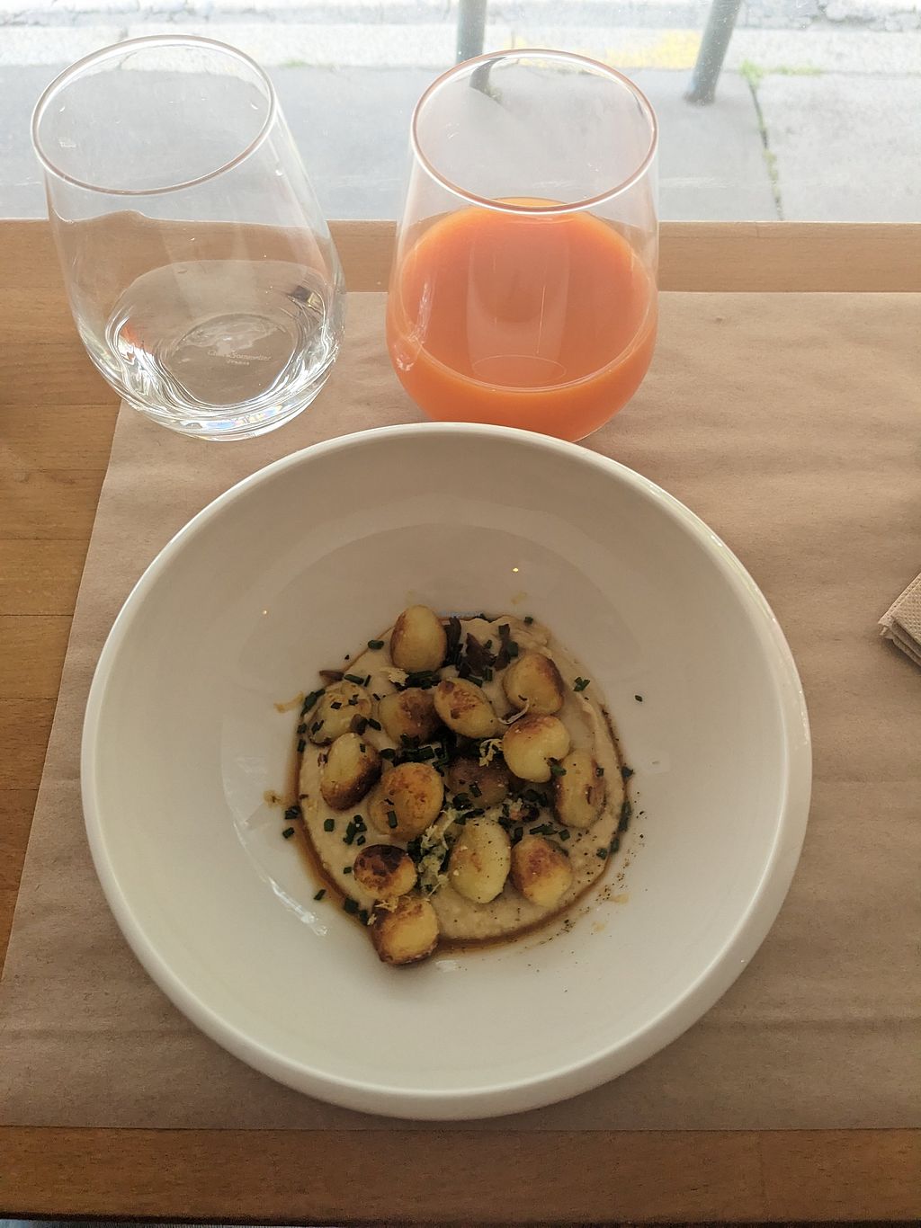 Walking in the door we immediately felt at ease surrounded by the pleasing decor and light music. The attention to detail and high quality really show, right down to the sweet napkins. The chef is gracious and thoughtful, talking about their effort to reduce the climate impact of their menu, which is bio/organic and vegan. Even the drinks are chill. Menu has just a couple options but it’s on the cheaper side of vegan restaurants in the area.