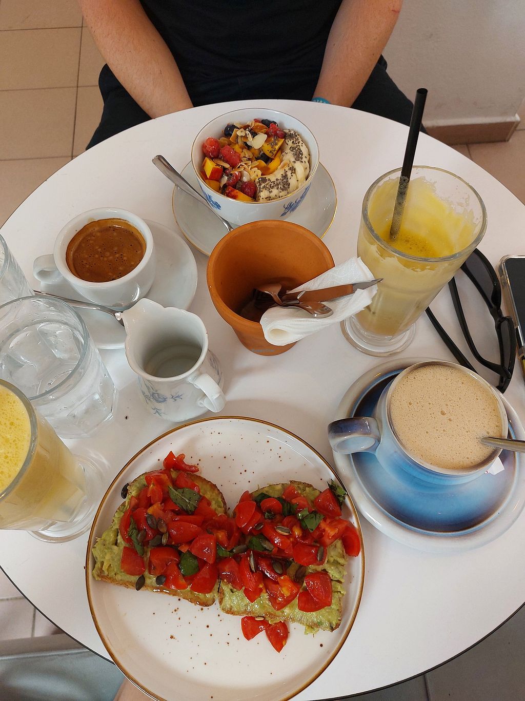 For the smoothie I have to say that we had to change the iogurt for almond milk and we had to pay a supplent (which nobody told us , not even the menu or the waiter) . The smoothie was quite ok, but It would have tasted the same with water.