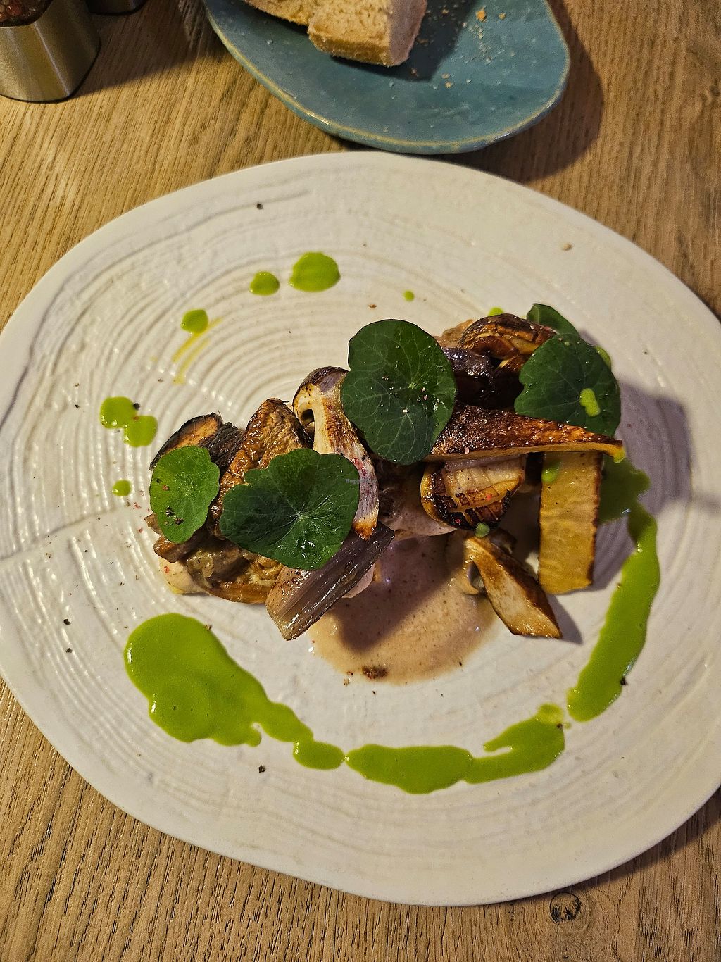 Red cabbage carpaccio with vegan foie gras (best course!)