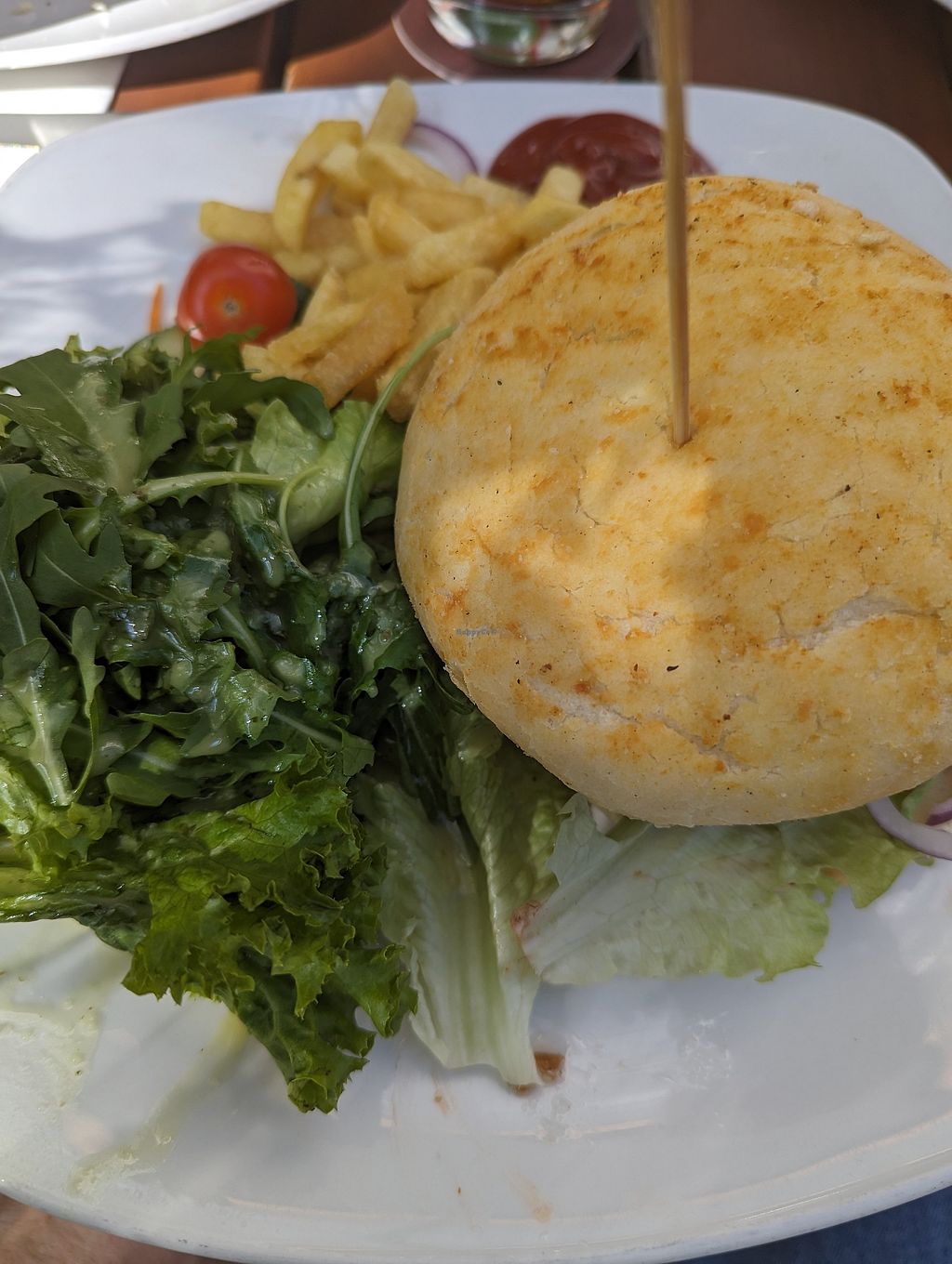 The fries and coleslaw were very good, the burger was... kind of... soggy. They write that they don't fancy Beyond Bear because of the additives, which I fully support. But the burger was kind of weird. I think it was a combination of lentil and potato(?)