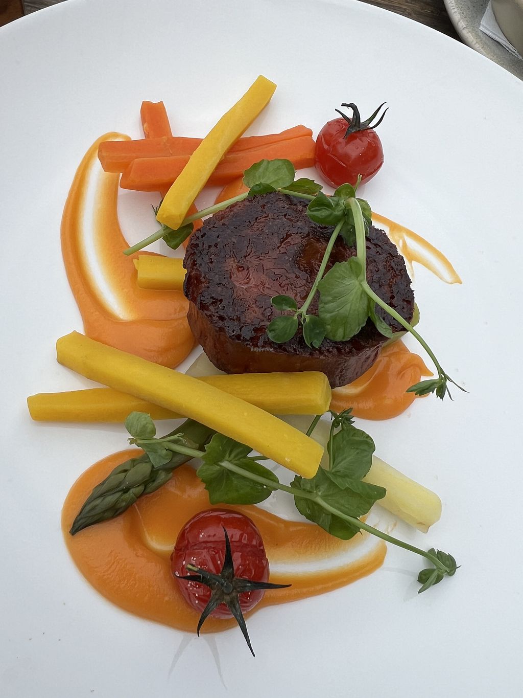 Pros: Vegan tournedos , Zeer gezellig terras, Vriendelijke bediening