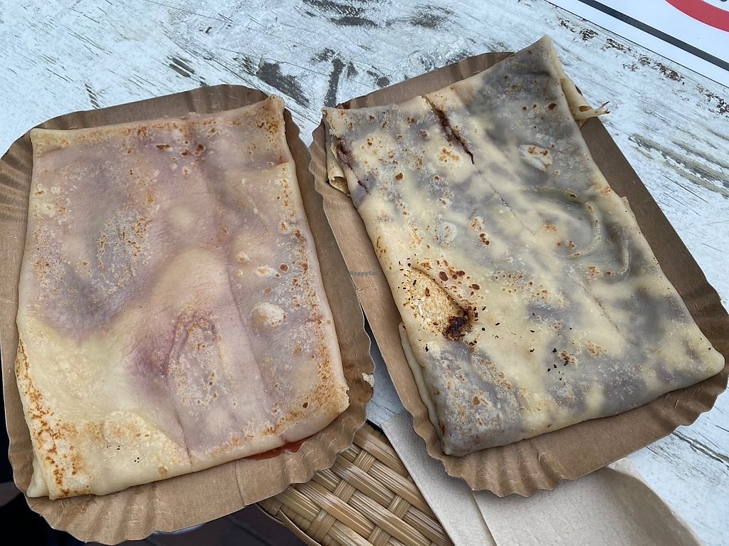 Habe 2 Vegane Crêpes gegessen. Einen mit Marzipan und einen mit Schockocreme (Bionella). Beide waren super lecker. Es gibt noch mehr Vegane Crêpes Varianten.