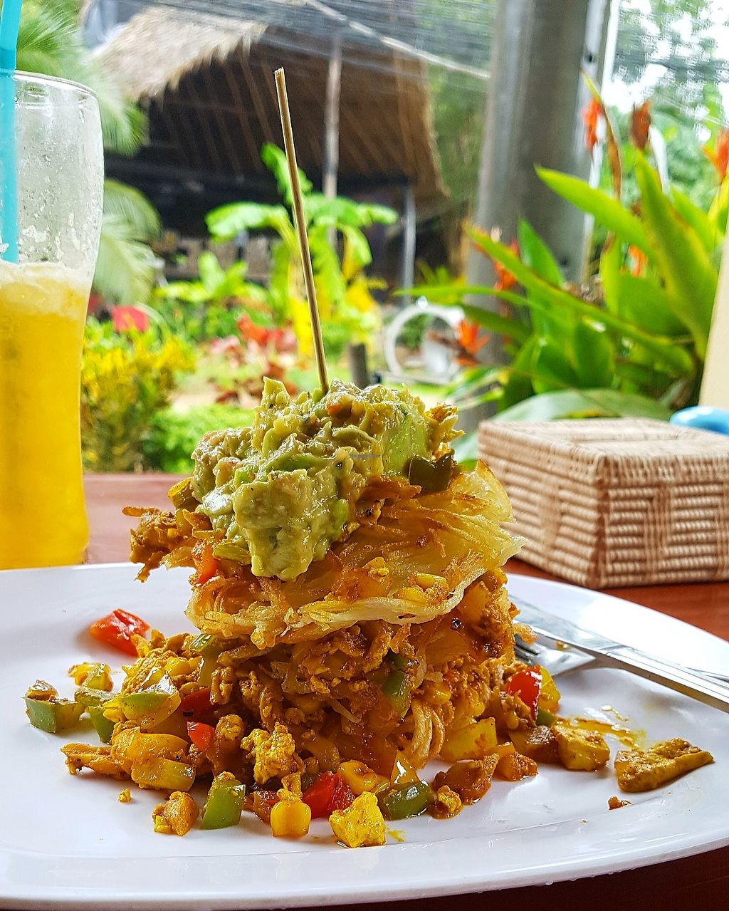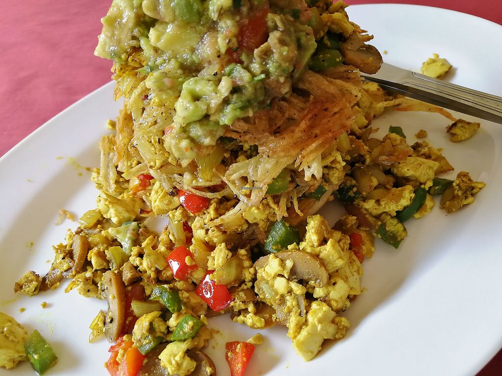 Had the straycats special which is a tower of hashbrowns and tofu scramble topped with avocado. The hashbrowns were deep fried and very crispy. Everything that can be veganized is marked on the menu. Probably the restaurant with the best music!