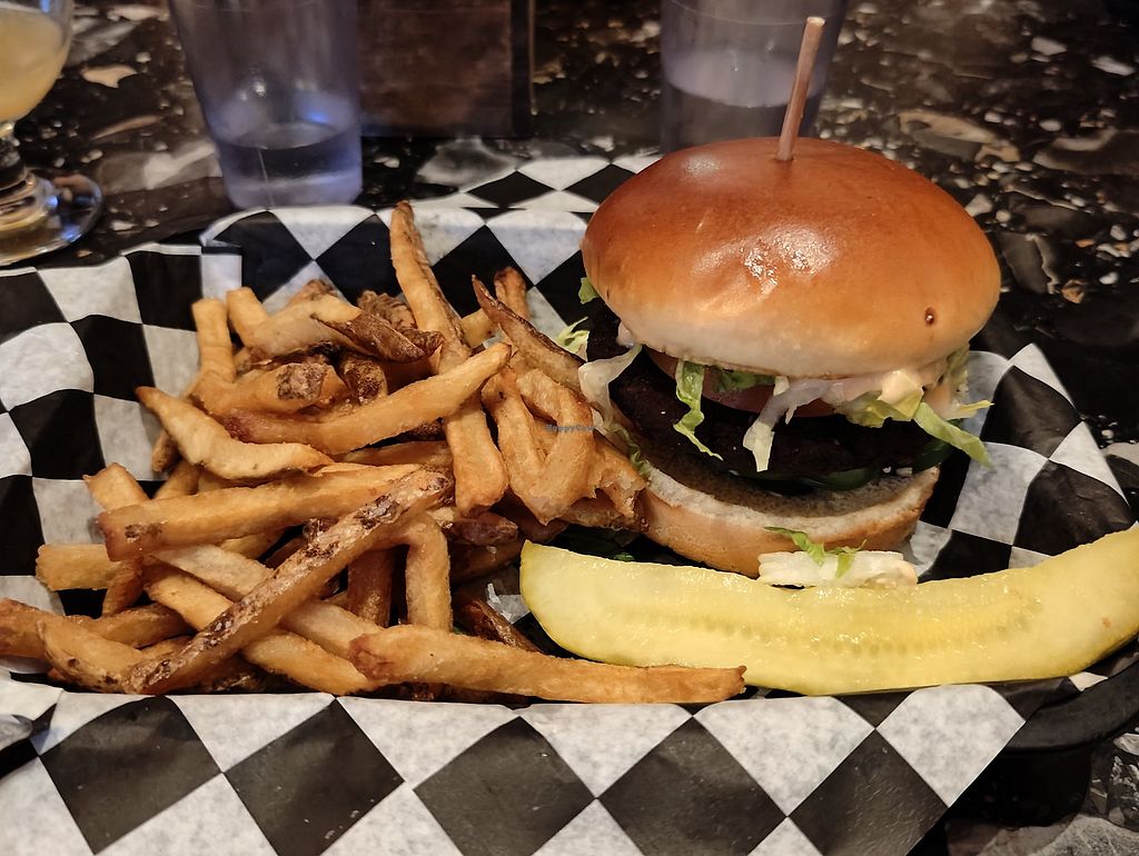 BBQ Vegan burger and togarashi tots