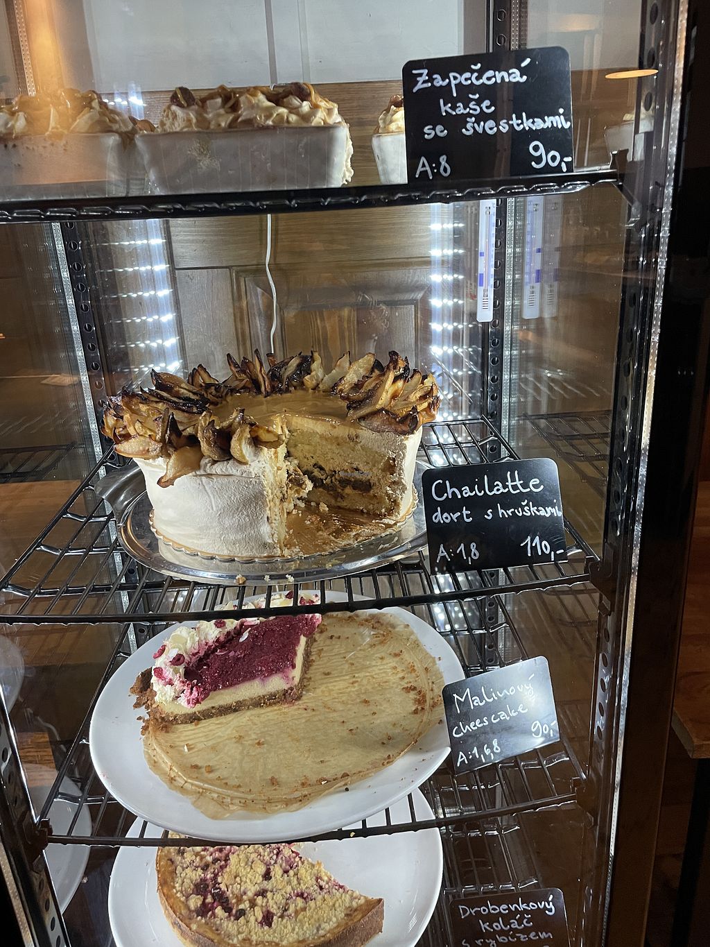 Extremely friendly staff. They took the time to explain everything for us in English. A large menu with different (Czech) options. Delicious cakes.