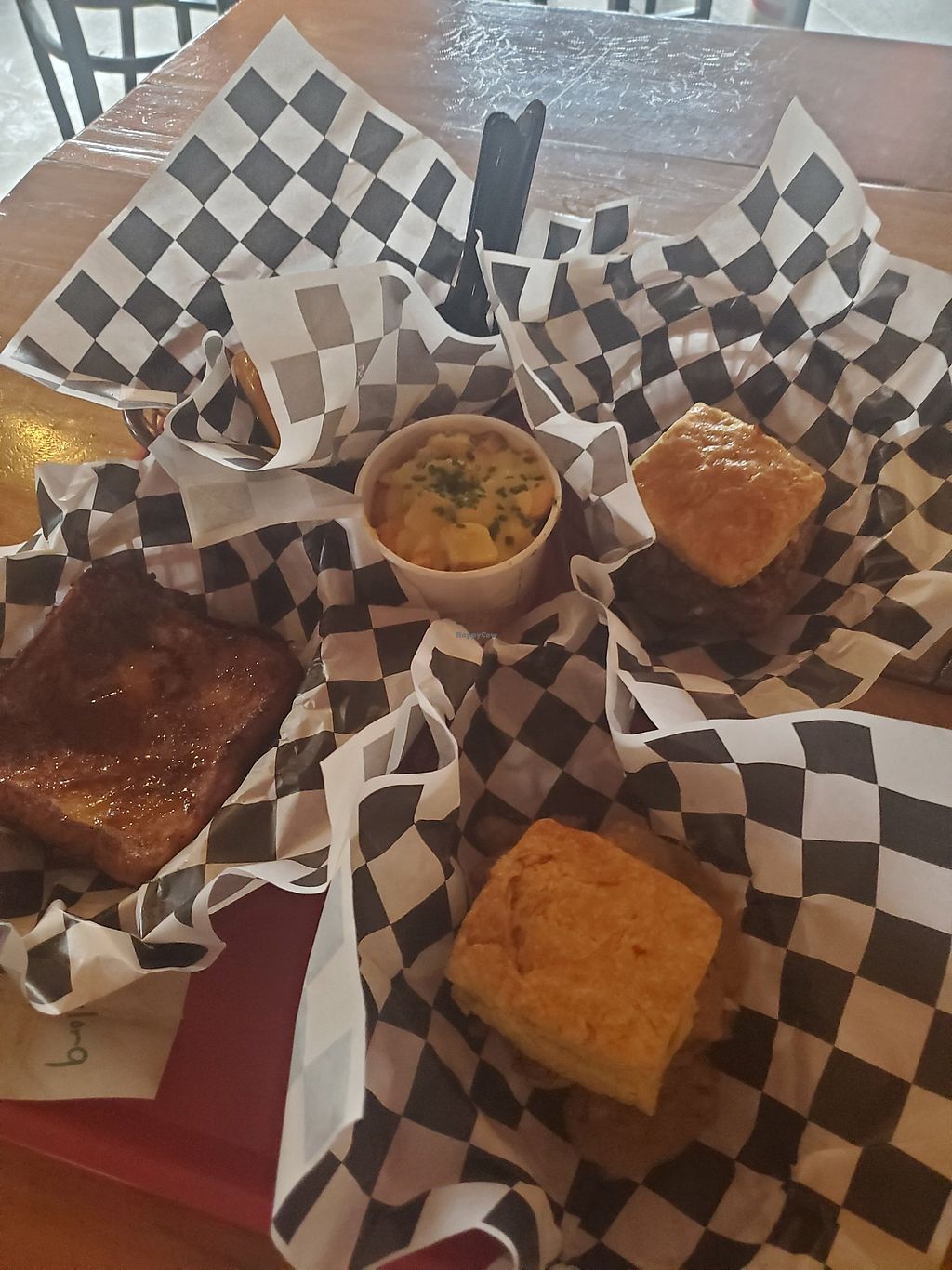 Read moreI went to support the corktown store for their opening weekend a few weeks back. Their chicken sandwiches left a lot to be desired. It was a small fried tofu patty on a bun that wasn’t very filling or flavorful. I may have ordered a basic item so the flavor issue might be on me but the portion size still felt too small. I think for their Third Street bar location having smaller portion sizes makes sense, but for a sit down restaurant it felt underwhelming.