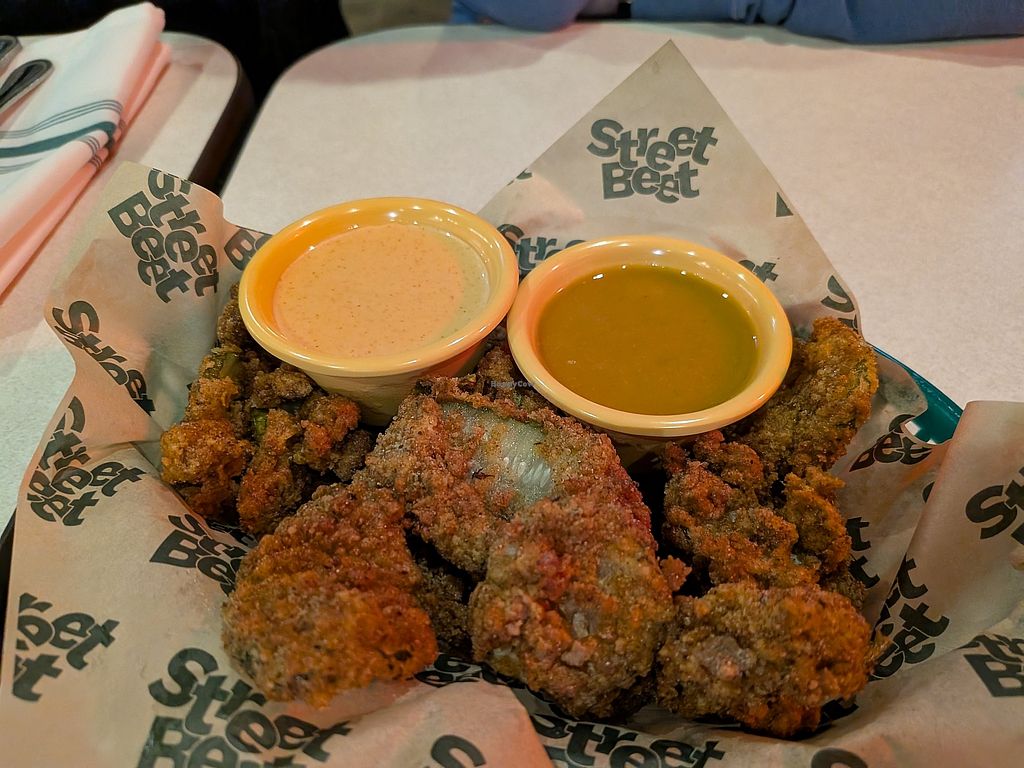 So stoked about street beat’s brick and mortar. We went for grand opening weekend and enjoyed their Mr chicken sandwich, fries, fried pickles, and tahini chocolate chip cookie. All of which was delicious! The only thing I wouldn’t recommend is the Mac and cheese—it unfortunately lacked sauce and overall flavor.
