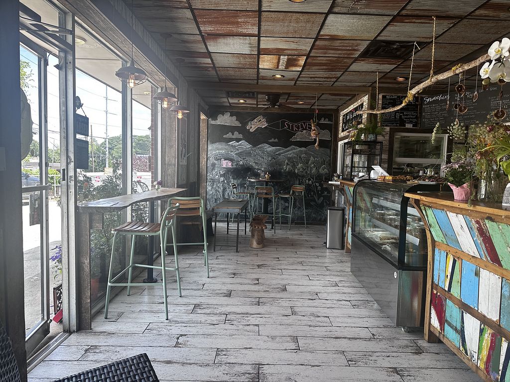 I went to Strive Foods for the first time about 2 months ago when I was visiting (I now live in Atlanta). I went no less than 3 times a week for the three weeks I was here. I love the varied options, that you can take pre-made things to go or have them heated up there or the fresh smoothies, nice creams and coffee.😄The kiara's and breakfast tacos are so far my favorite thing, the caesar salad and the mac and cheese!!!! Everyone who works there is exceptionally kind (I suspect it is because the owner, Claudine is exceptionally kind herself, and well... vegans!😄and I always look forward to going there. There is also free wifi and a guitar in the corner! I've lived in many of the "cool" cities in the U.S. with delicious vegan food and this rivals vegan/gluten-free food I've had in N.Y. and L.A.! They have DELICIOUS brunch on the weekends!