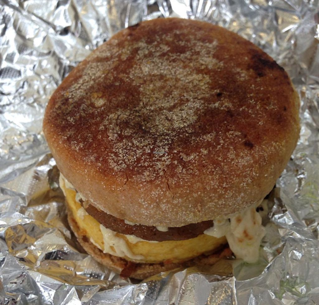 Had egg "trick" muffin. Had to get another to go and their chicken sandwich. Vegan comfort food at its best!