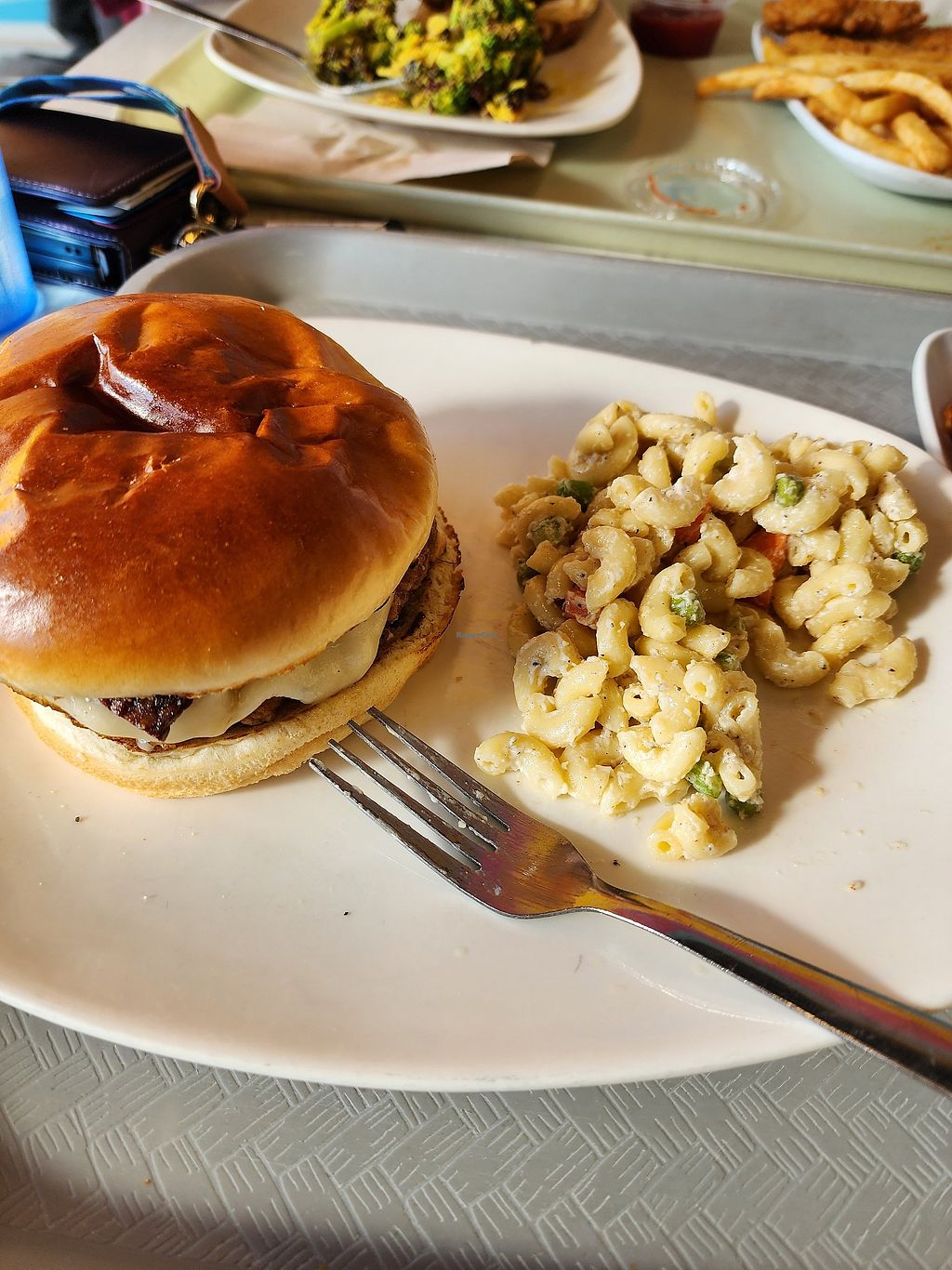 Delicious food, large salad and amazing nachos! Even a half order served as a side for 3 of us to share. I enjoyed the Southwestern Chicken Salad, just subbed ranch dressing. Love that they use real dishes/cups and utensils instead of disposable. They even have a water bottle filling station.