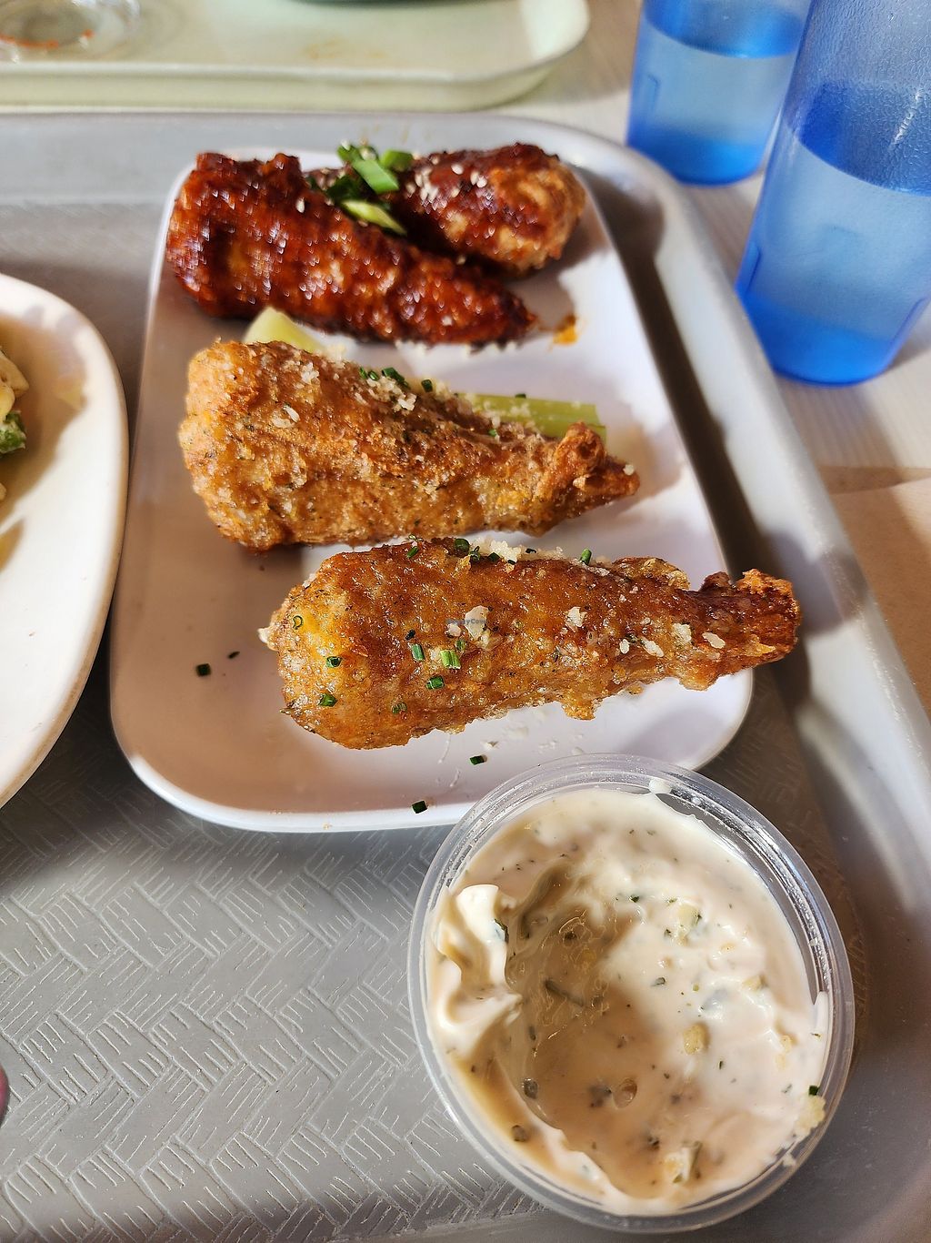 Make sure to try the wings. We had half garlic parm and half BBQ. They’re not to be missed! My husband’s Philly cheesesteak was enormous. The chicken Shwarma and kale chicken Cesar wrap are perfect for lunch time.