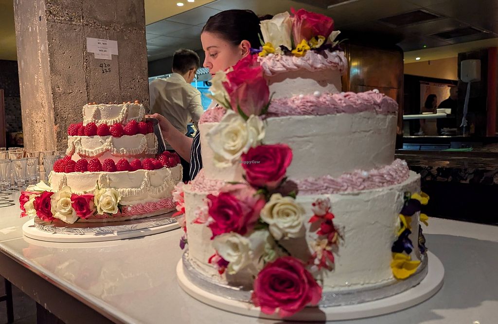 The food was delicious, and we've received lots of compliments. Six months later we still have some of our meat-focused relatives telling us how much they enjoyed the food. The wedding cakes were magnificent, taking full advantage of Alexia's patisserie training! (The second cake was gluten-free - these folks had an excellent meal too.)