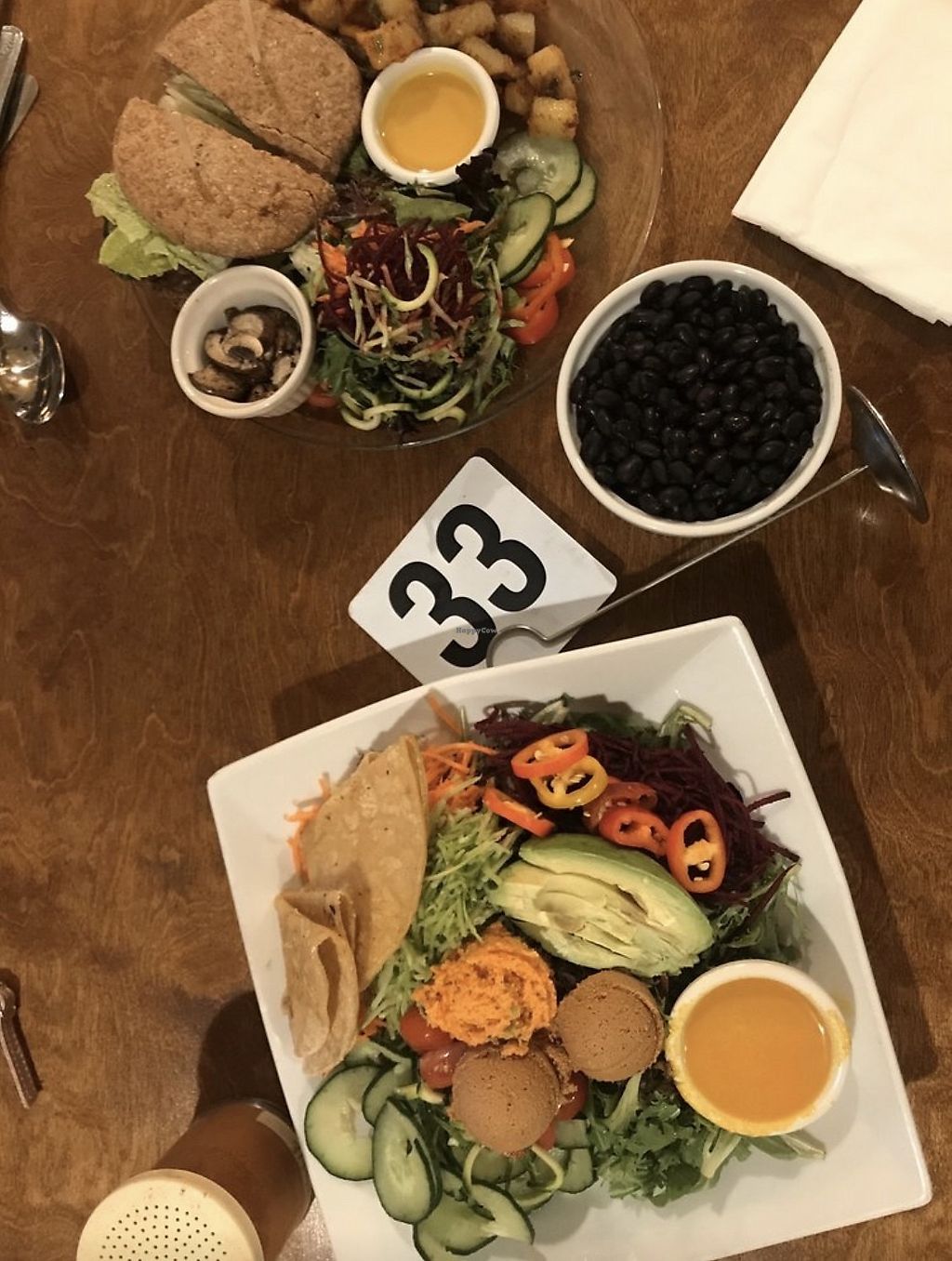 Side Salad with carrot un-tuna; Cottage Fried Potatoes