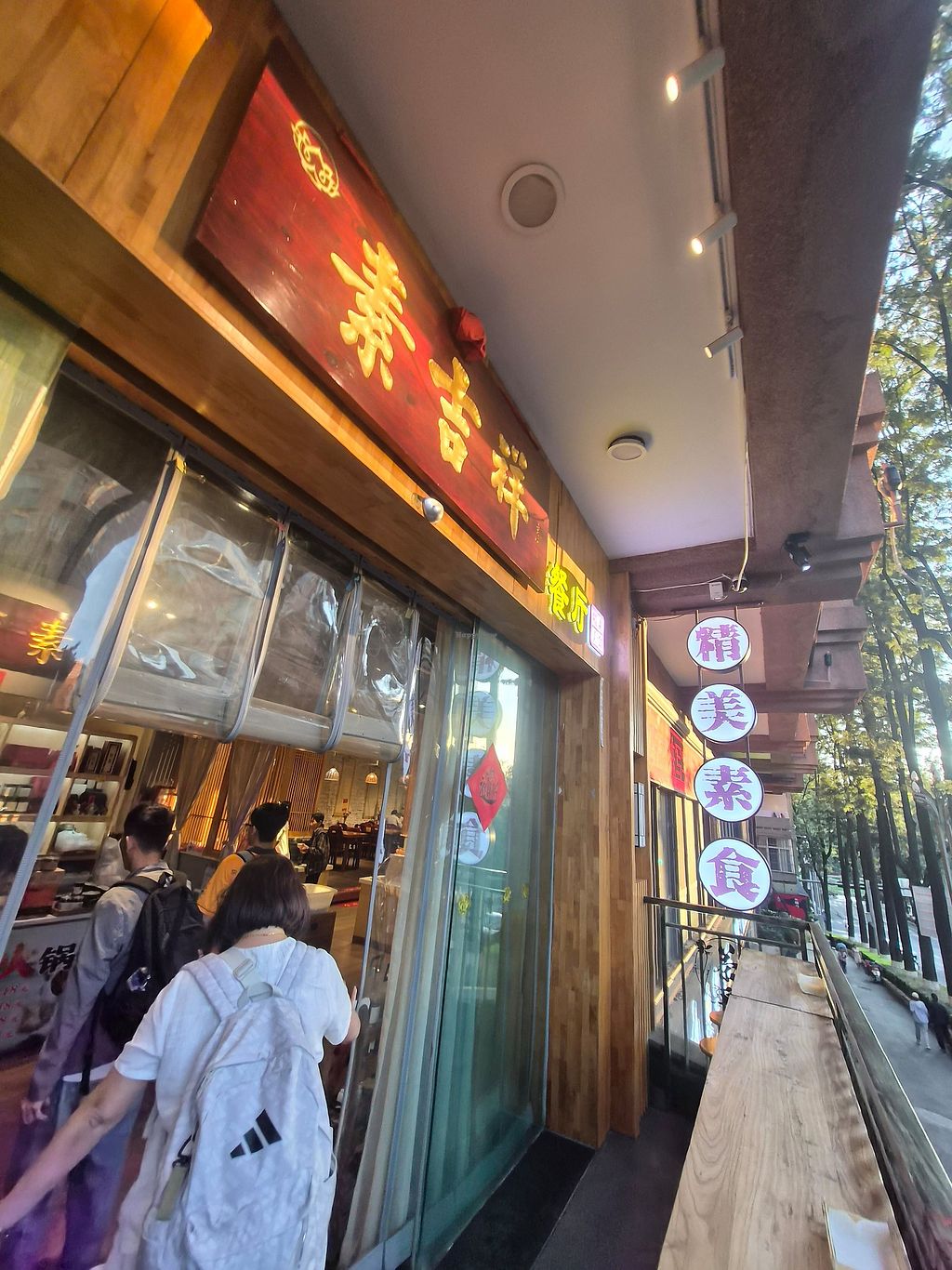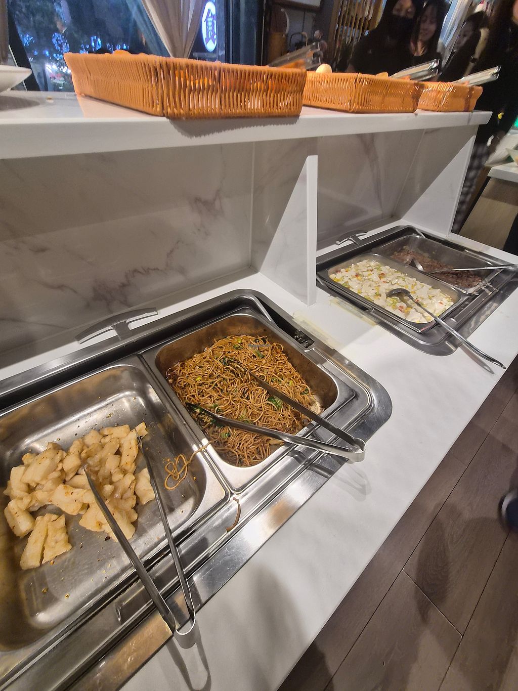 Buffet for 20rmb. You can buy also cup of tea for additional 20rmb. Food was good, all for sure vegetarian, probably full vegan. Vegetables, tofu, noodles, rice, bao. Only point the place was a bit to cold. The place is at first floor.