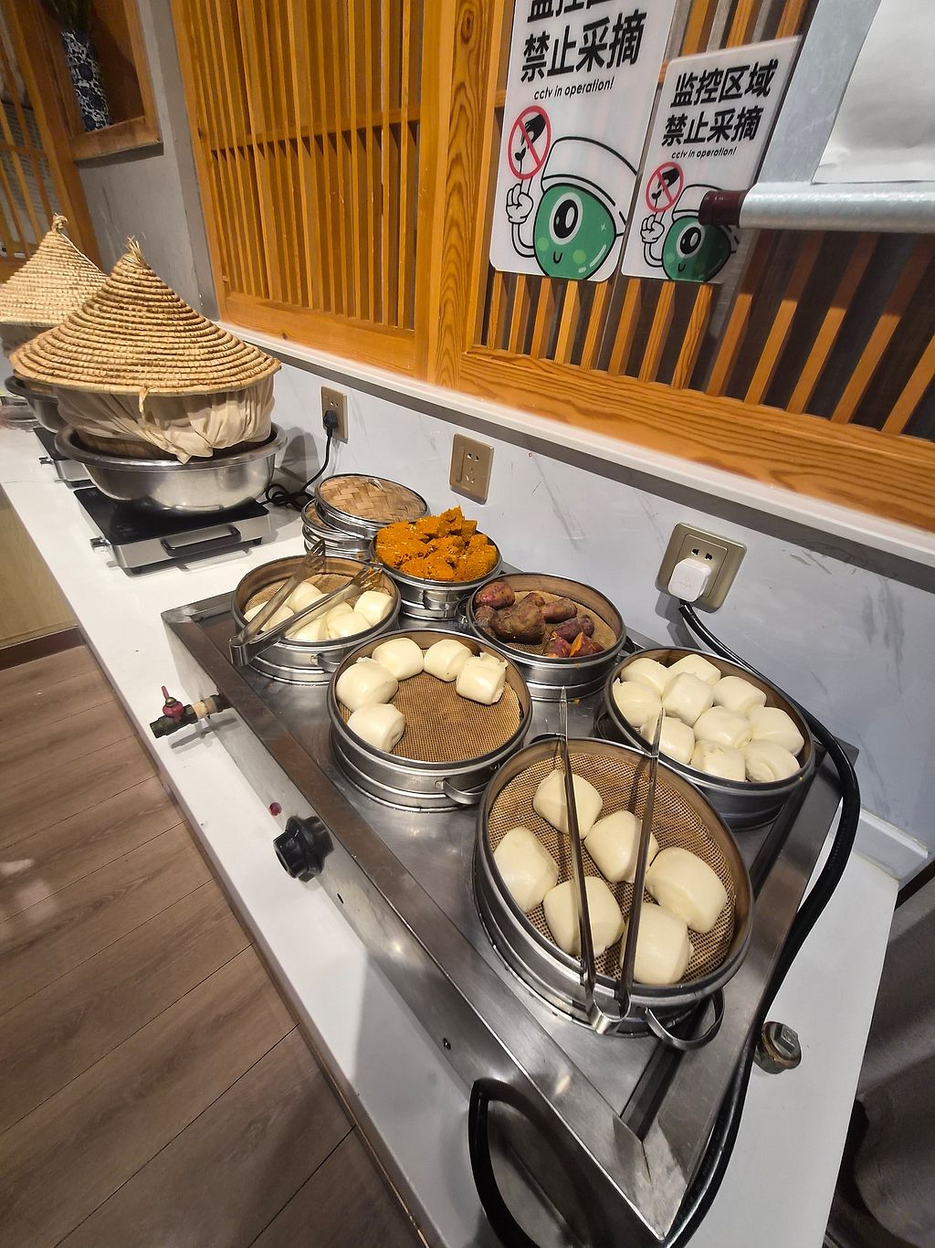 The buffet is visible from the street due to big steps leading to the entrance. Pay 20yuan and get tea, soups and veg dishes. Taste was not special but for 20yuan you can not complain.