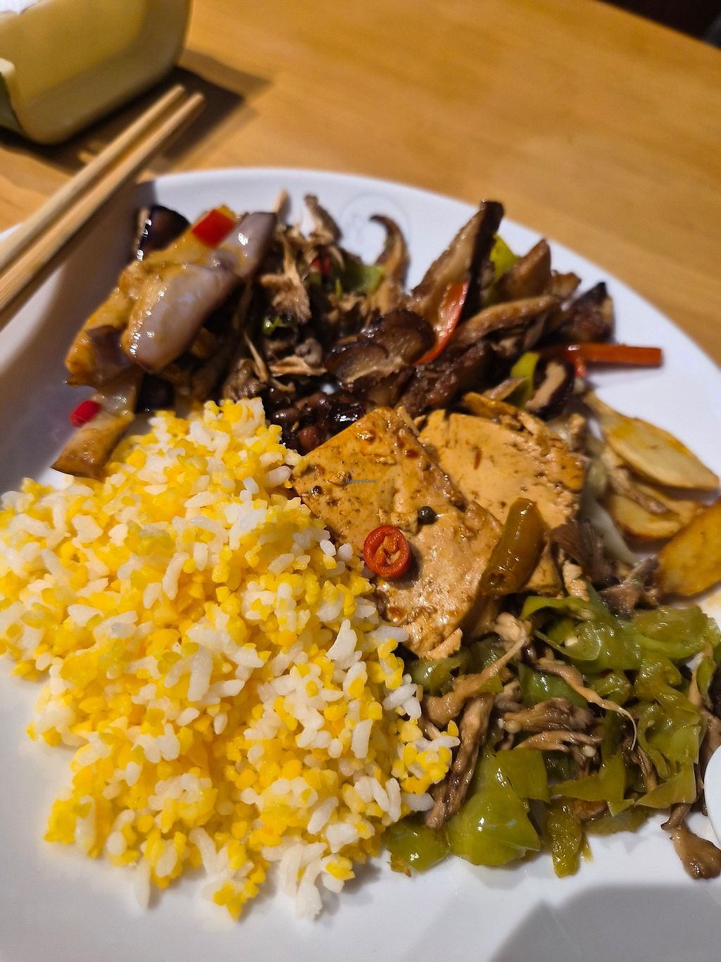 Went at lunchtime, it was very busy but there was plenty of food. Many different tofu dishes, good variety of veggies, with different rice and noodles to choose. And all for 20¥!