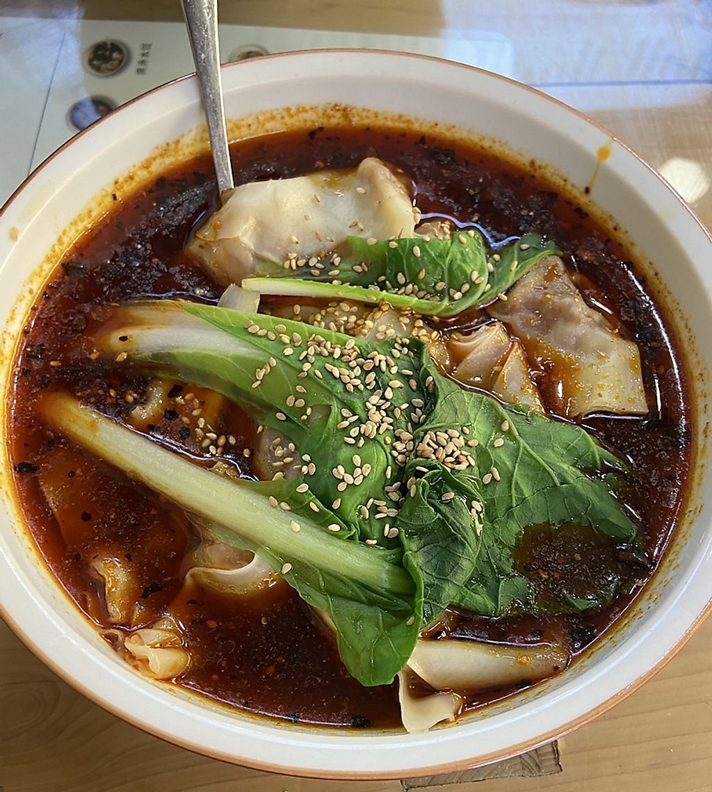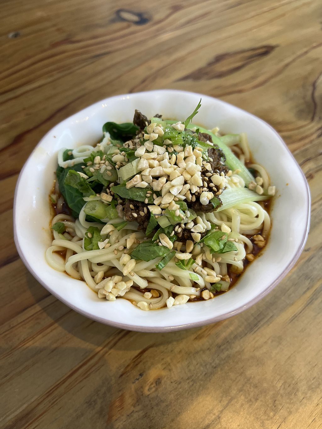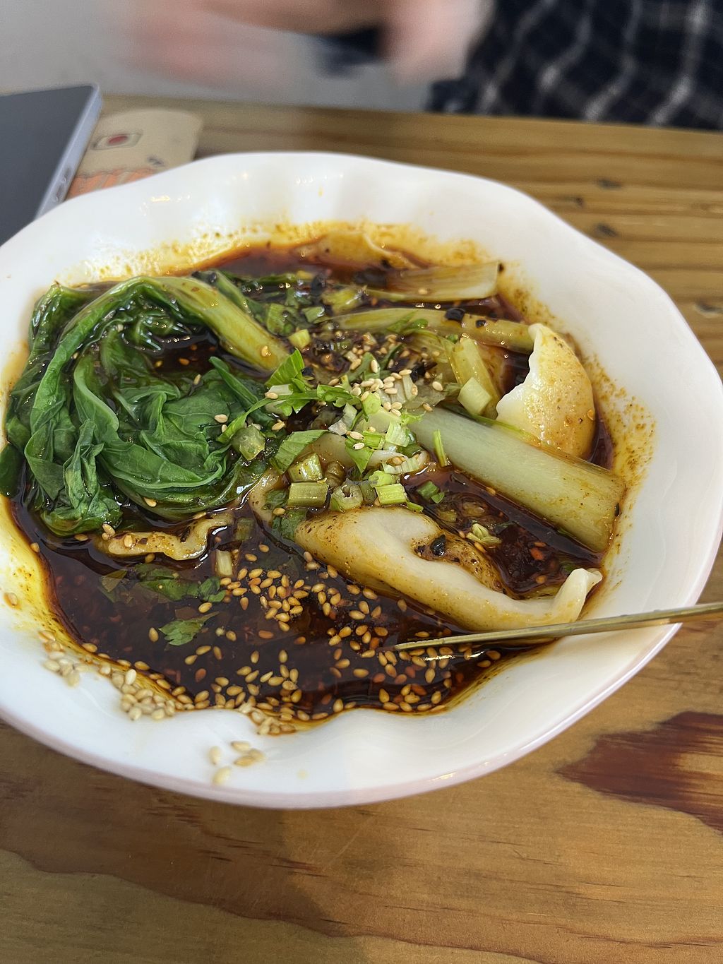 I went with the lady’s recommendation: dumplings in a spicy sauce that had tahini in it. The sauce was so good! One of my favourites in China so far 🐈✨