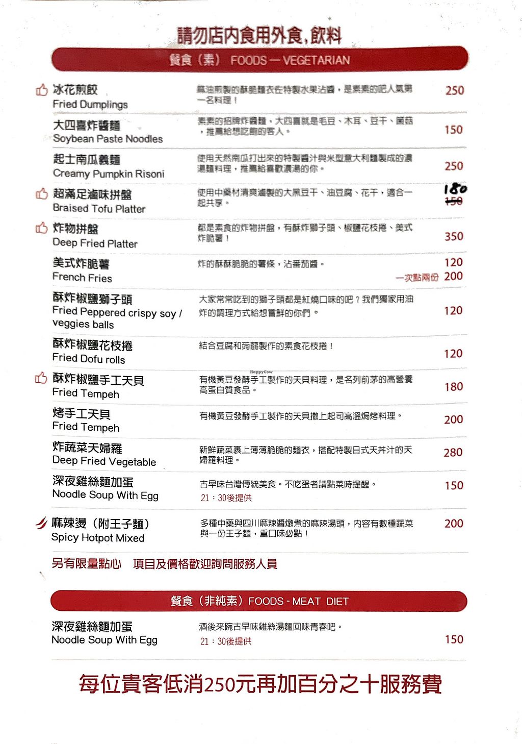 I was hoping for more non-fried food items, but I was disappointed. I ordered the soybean paste noodles, which were one of the few non-fried options. It was nothing to write home about. Drinks are also middle of the road and a little pricey. Minimum spend is NT$250 per person.
