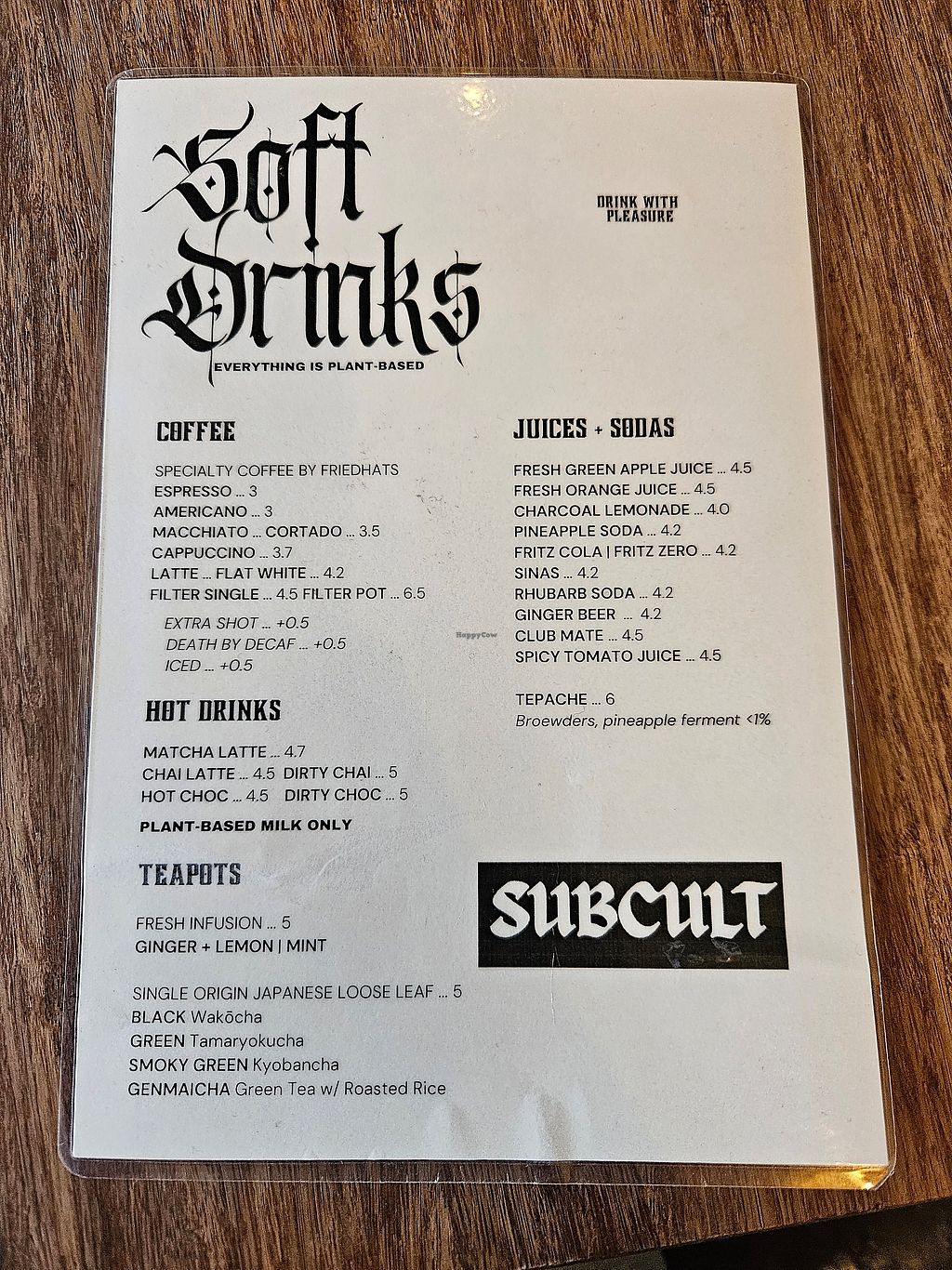 Menu drinks