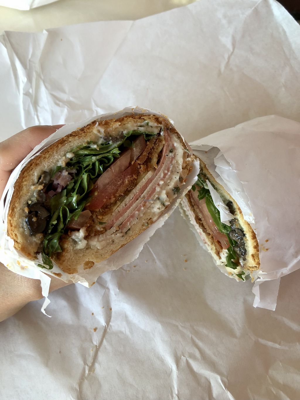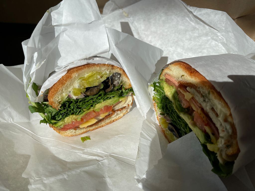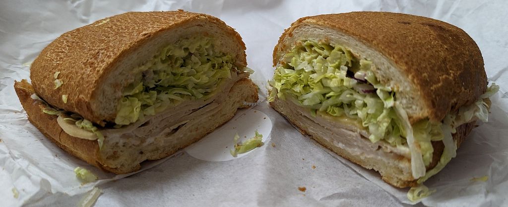 Light Warrior Sub w/ delicious bread and vegan turkey, fixings + avoca…
