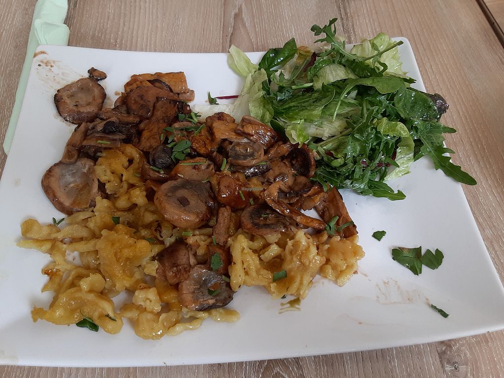 Spätzle with mushrooms and salat