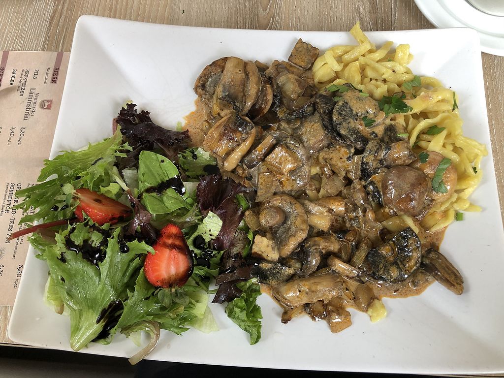Mushroom and tempeh with homemade swabian pasta