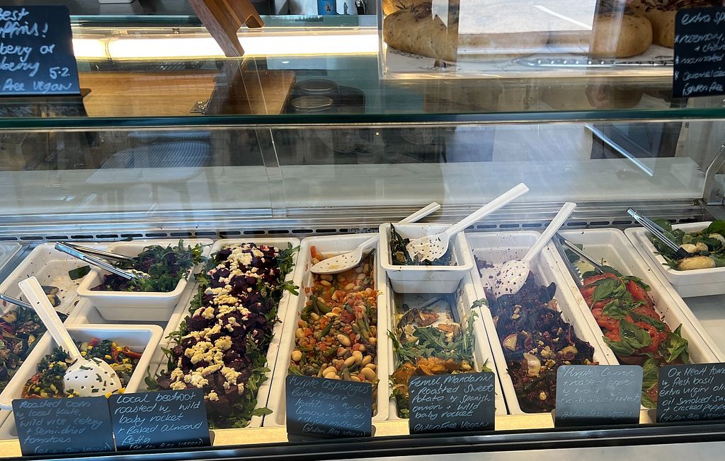 Freshly baked bread daily, freshly made salads, freshly made muffins, freshly made brownies.