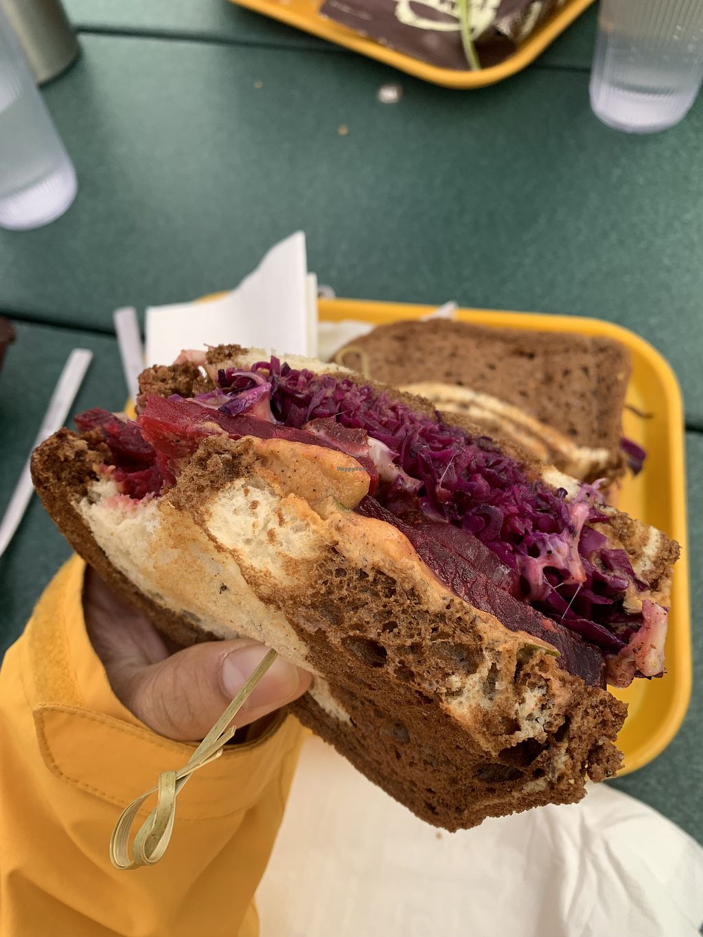 Had the (Veggie) Reuben with Beet Pastrami. Was very unique in flavor and pretty good! Kinda wish they just had a ‘half sandwich’ option as it’s a big one. Got some left overs for later!