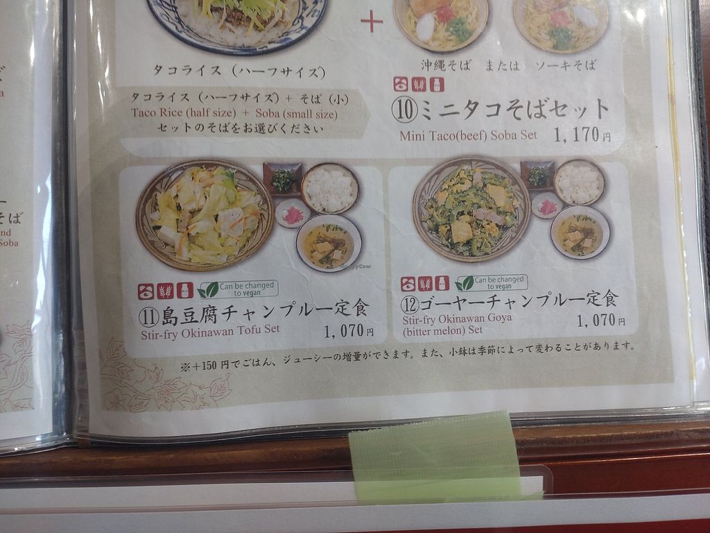 They have a few choices that can be made vegetarian or vegan and they are clearly labelled. Quick service, good food, really inexpensive. Definitely a good option if you're near Shuri castle.