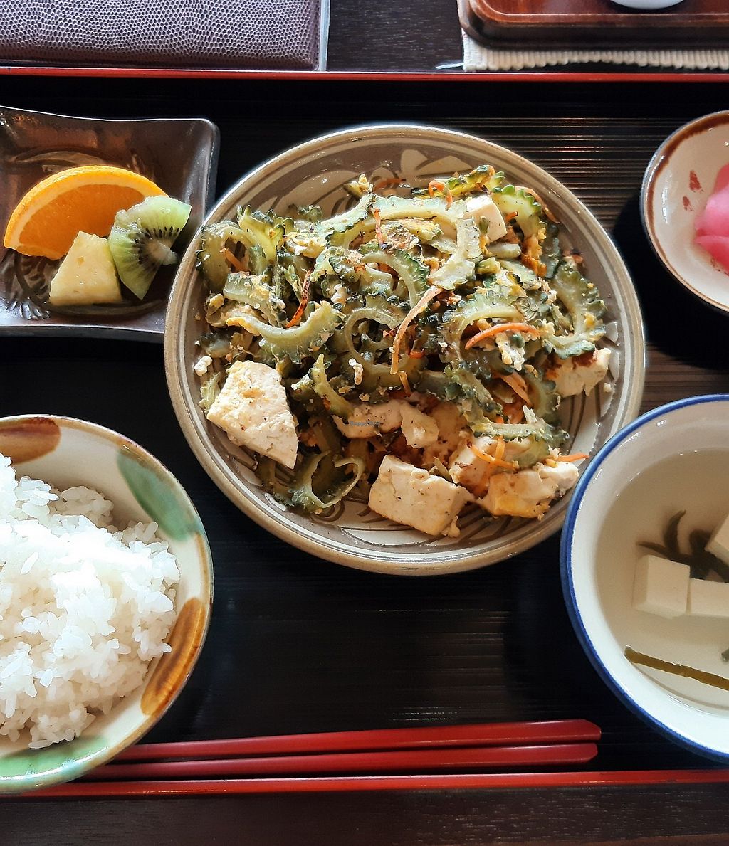 There are several dishes that can be made vegan (see pictures). I went for the stir fry with bitter pumpkin, tofu and egg. It was plenty and the small fruits as desert were also great.