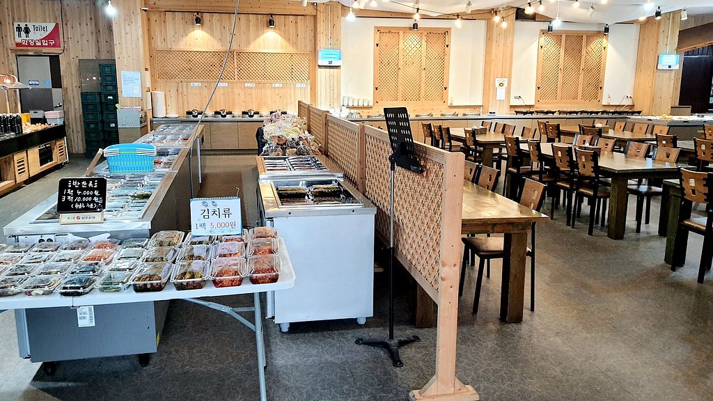 store section (left side) at the entrance, buffet in the back