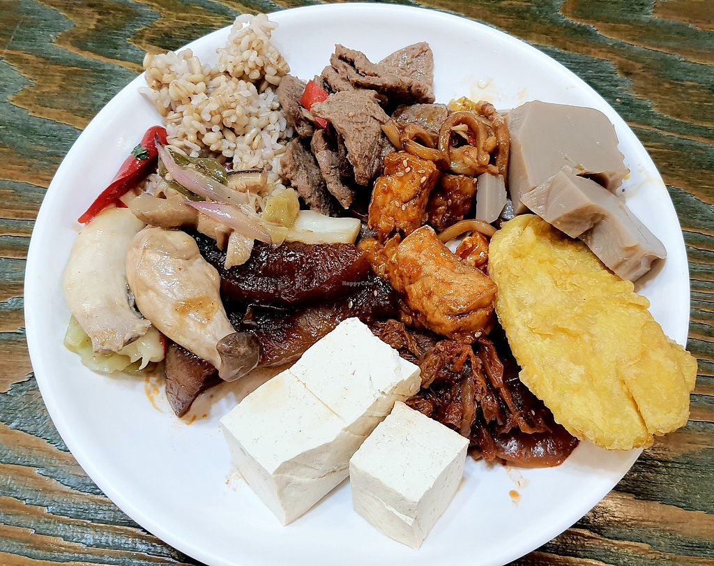 plate filled with food from the buffet