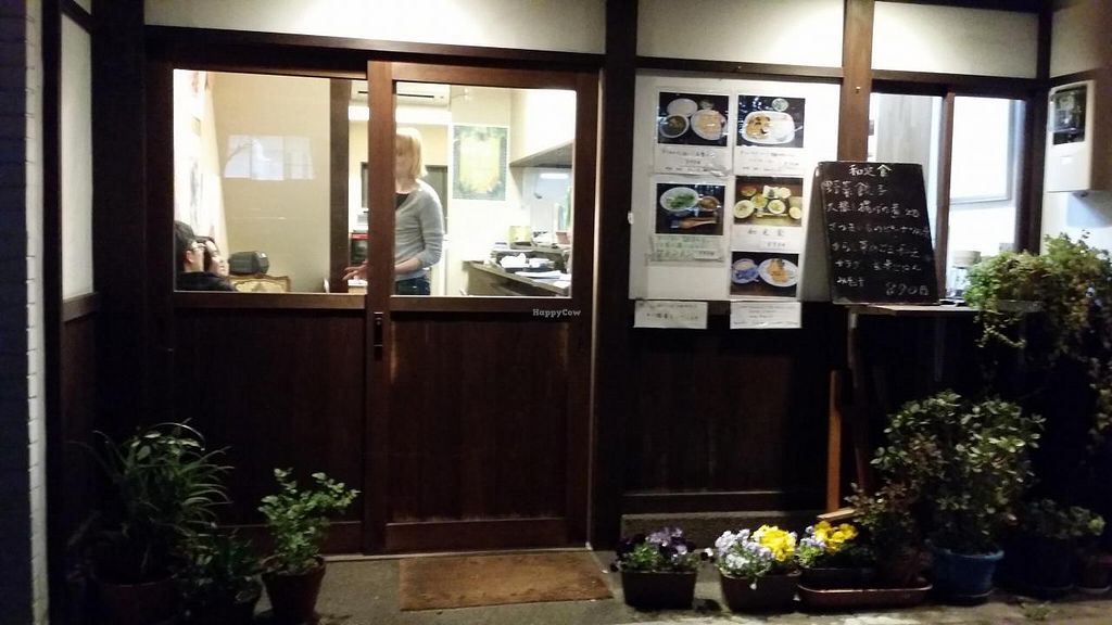 Tiny restaurant on the north side of the road east of the Hyakumanben intersection in the Kyoto University and Ginkakuji area. English speaking staff. Relaxing atmosphere. Serves Japanese style lunch and dinner menu (teishoku), Indian curry, and noodles. Previously named Earth Shokudou. Mar 2014 owner reports no egg or dairy used. Reported closed September 2020.