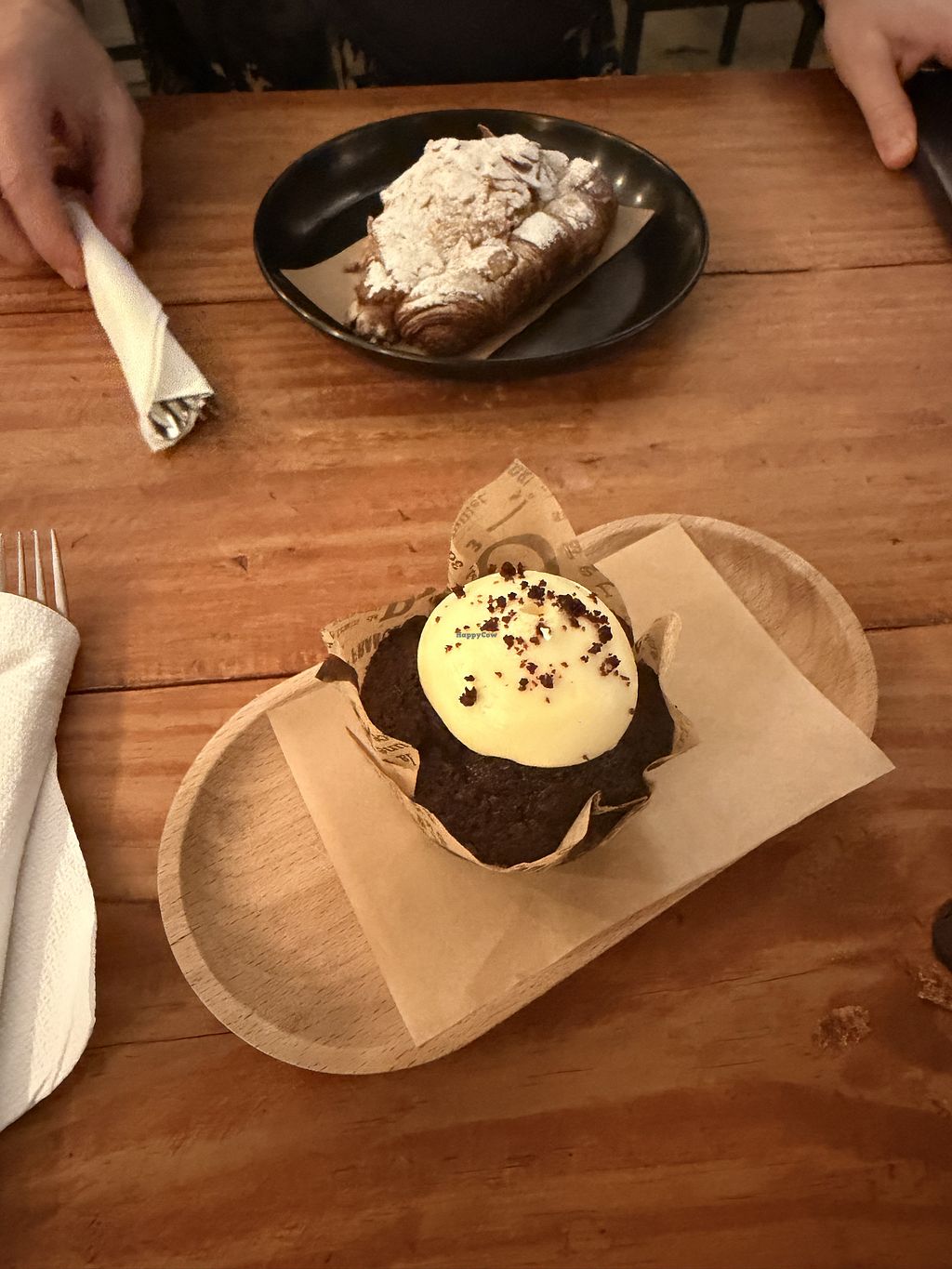 Edit: There is a 'pastry buffet' inside the café with non-vegan croissants.