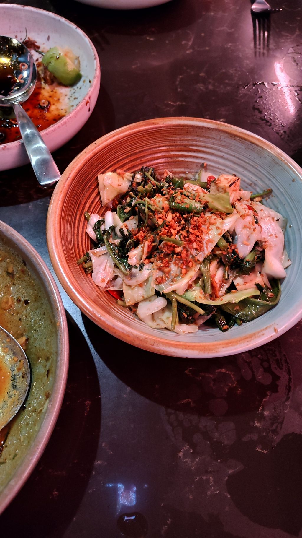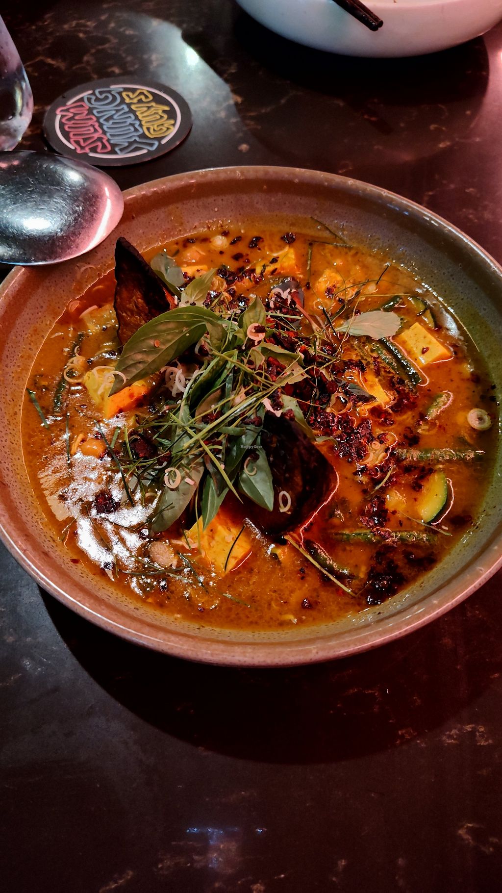 Serves meat, vegan options available. Modern Asian fusion restaurant offering vegan dishes such as spring rolls, crispy rice cakes, yellow curry and wok-tossed vegetables with tofu. Open Mon-Sun 12:00pm-9:00pm.