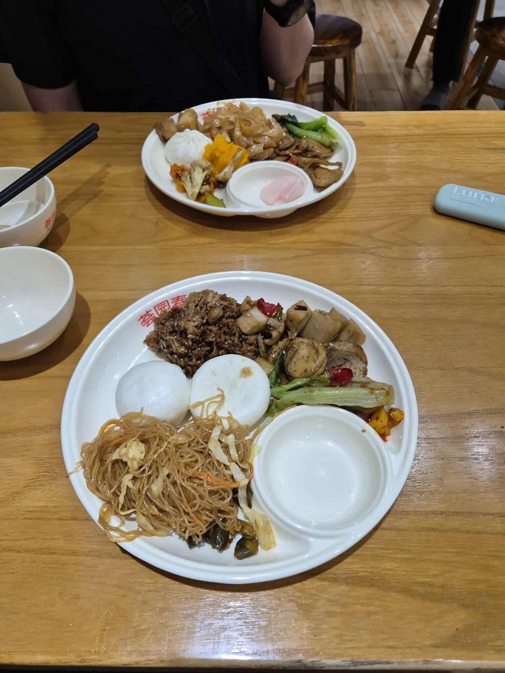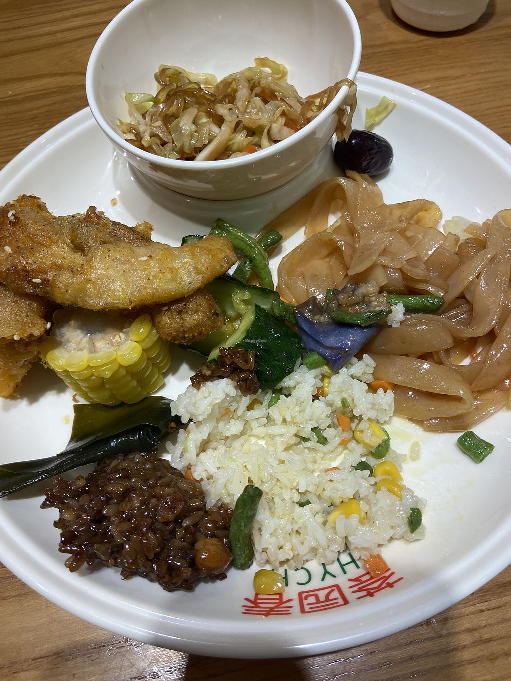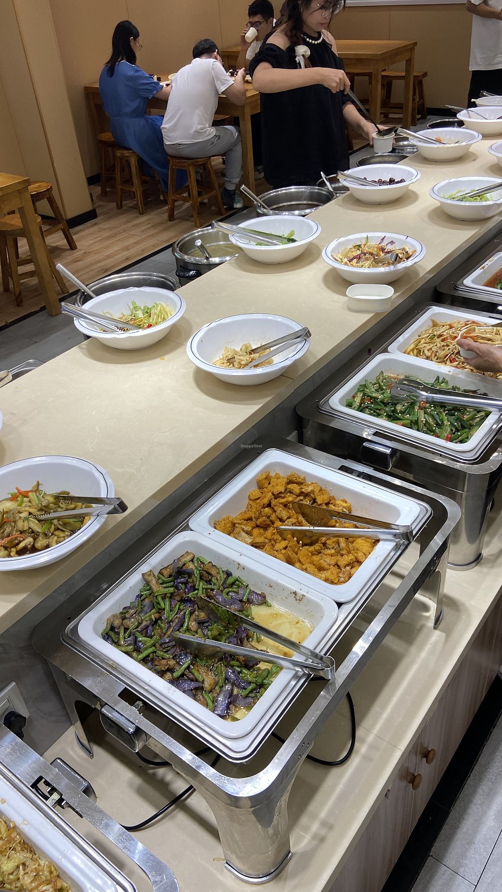 This branch is a smaller buffet version of the other one located in Wujiaochang. Still very tasty though. Enter and pay first, then collect your plates and chopsticks. They will also most likely give you a card worth 5yuan off your next visit. Seating also available upstairs. The bathroom is on 3rd floor. Black rice and tofu steaks were my faves. Fully vegan when we went. Open till 2pm at lunch.