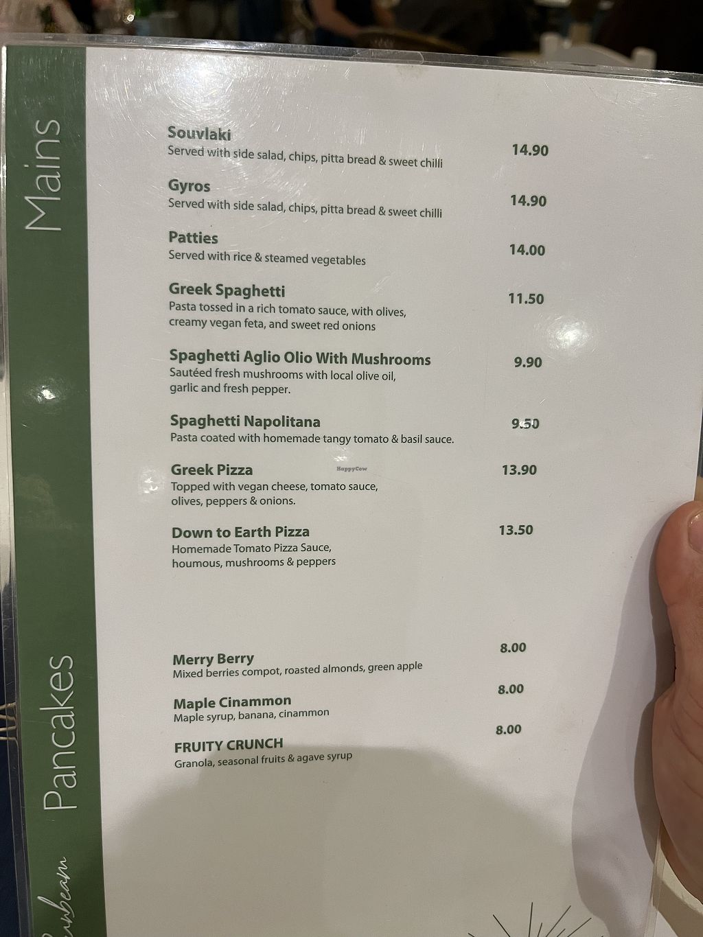 Really good vegan options, separate vegan menu. Had a very tasty Gyros, in a lovely setting.