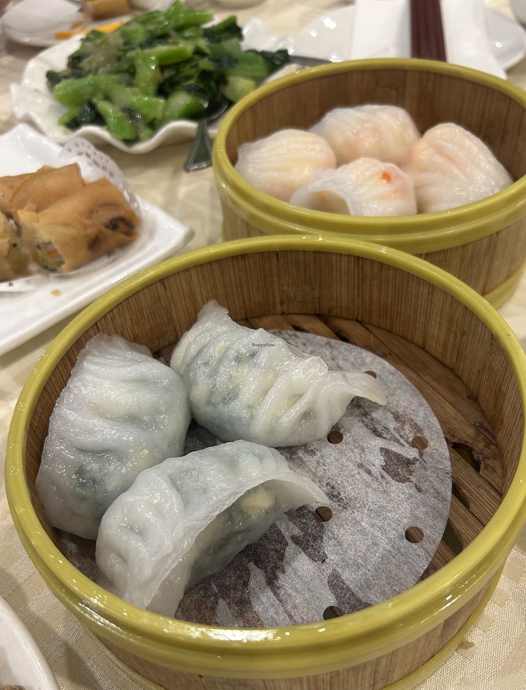 Steamed Vegetable dumpling, Prawn dumpling, Gai lan