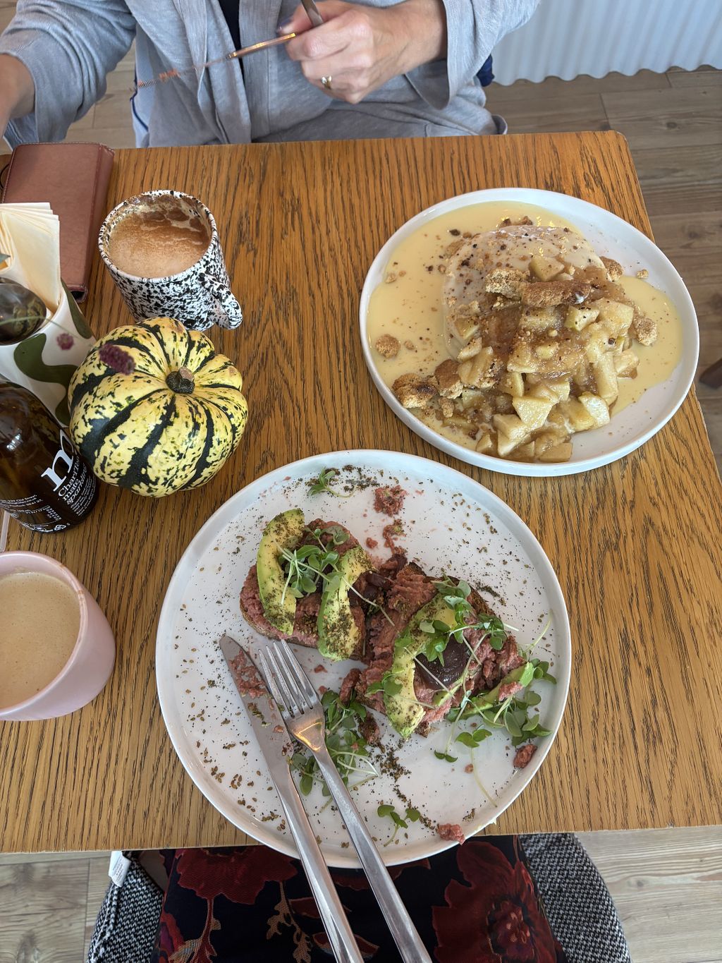 Tiramisu pancakes and avocado toast