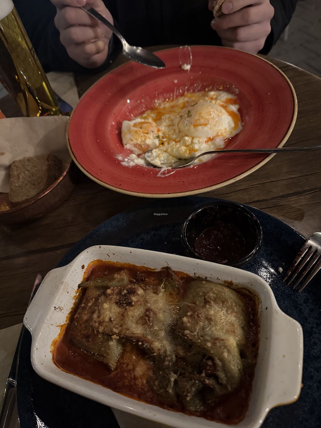 I came to this restaurant after seeing it had several vegan options. I was approached by 3 different waiters which made the service quite confusing. My non-vegan friend asked for the Shakshuka since it had no dairy (allergy). When the food came there was cheese on top of the shakshuka. My friend asked nicely about not wanting the cheese in the food and apologised for the inconvenience and the waiter (which I think is the owner) said she could not change it as she should have told her first that she didn’t want cheese. When we said it was an allergy requirement and that actually it was not written on the menu (we even checked after so as not to be rude) that there was cheese in the dish she took the plate away in a rude way and came back with another one without cheese which she just dropped on our table with disdain without apologising or saying anything. I found this upsetting and it completely ruined the experience for me. She was even present when we paid and just ignored us and never apologized. The other waiters seem to be nice though. Personally I also think all dishes could easily be made fully vegan and it’s confusing that some dishes like the one called “vegan pizza” have animal cheese (only vegan sausage) by default and one must ask for the vegan cheese instead. The portions are also really small and I had a strawberry pie for dessert which tastes only of yoghurt.