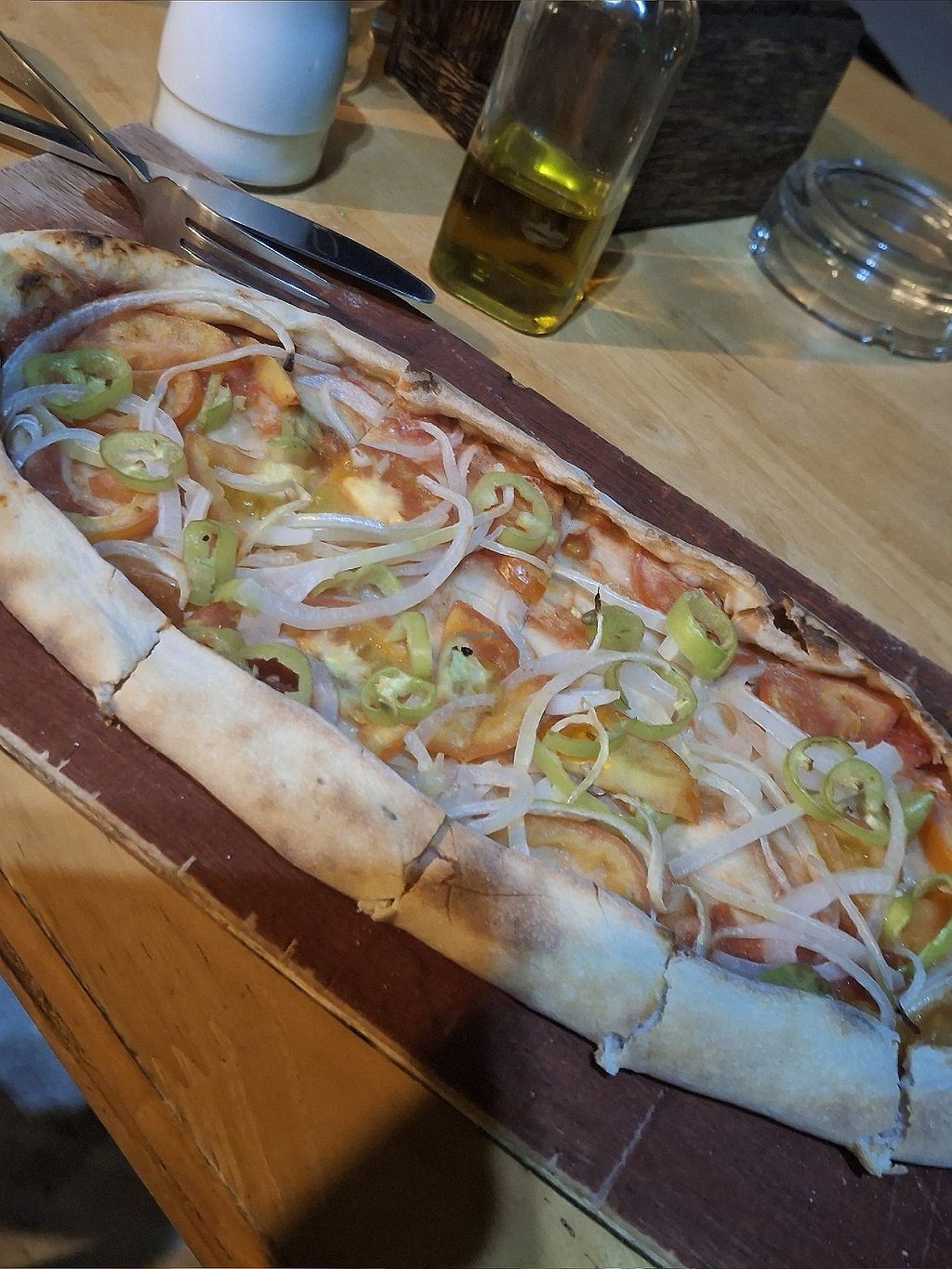 Authentic Turkish pizza in Long Set Beach. The Turkish owner is very nice and clearly very passionate about his food! Located on a little strip of restaurants setback from the beach. Has designated vegan pide and vege wrap on the menu. Greek Salad can be made vegan on request. No vegan cheese.