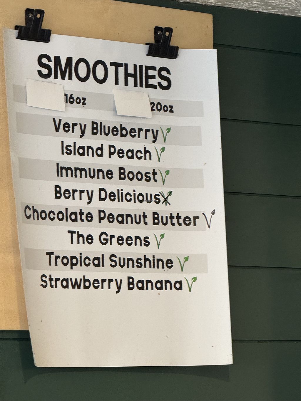Whidbey Cuke toast (hold the cream cheese) and Tropical Sunshine smoot…