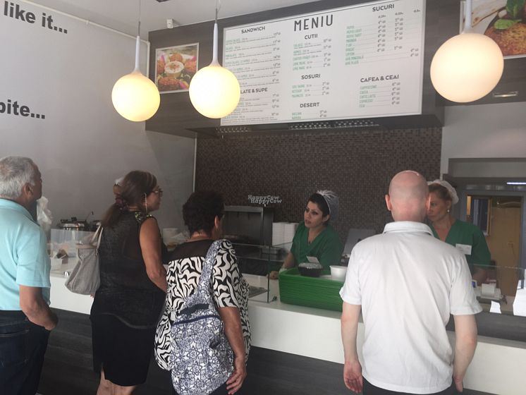 Arabic bread, falafel balls, salad, humus +2 drinks was 32 lei