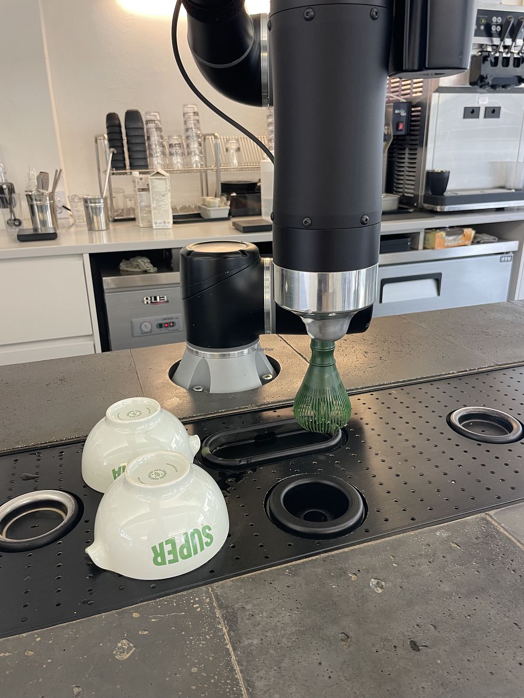 It was fun to watch the robot arm prepare the matcha tea, and it was very tasty. Vegan options cost extra which was disappointing.