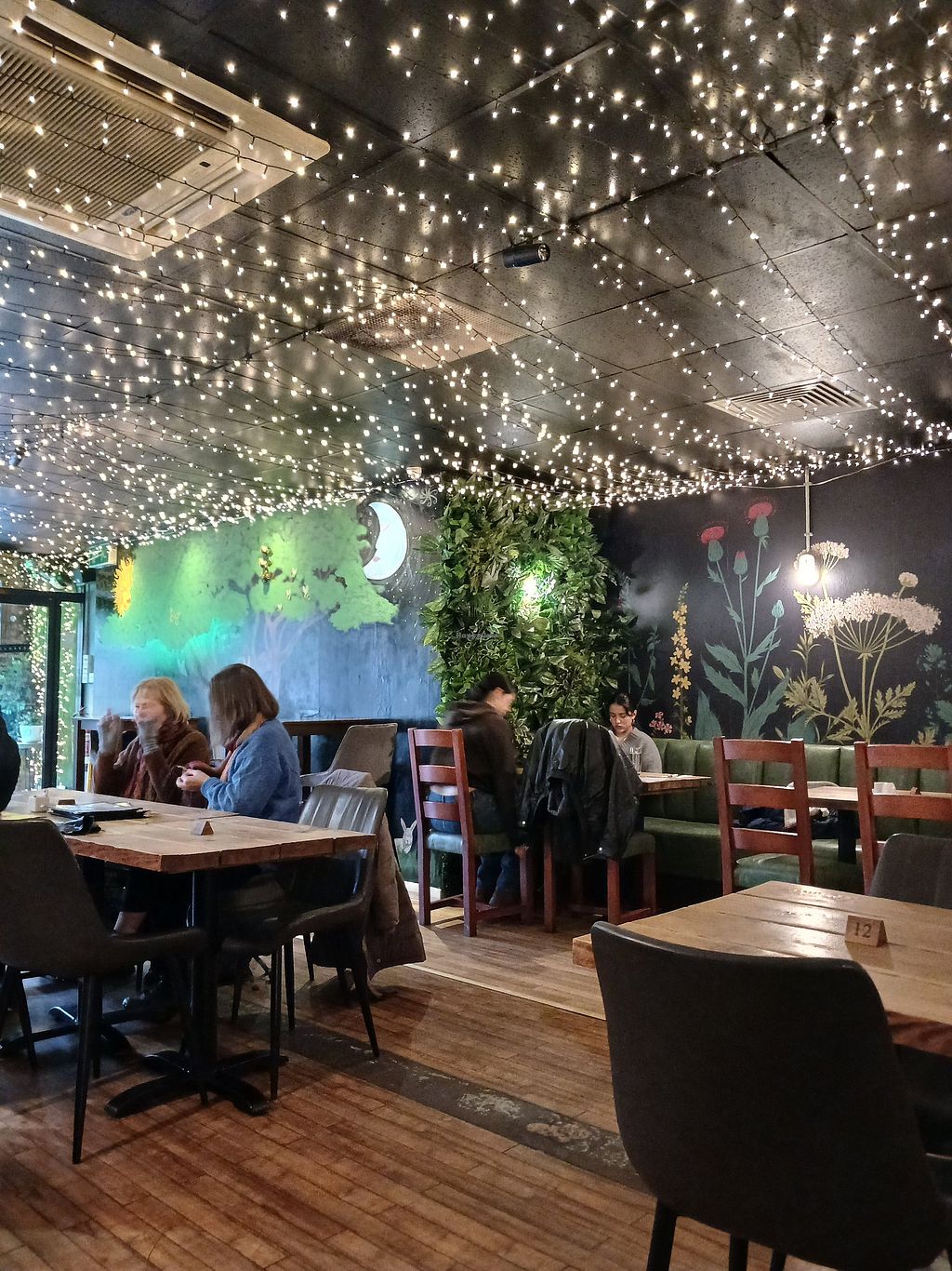 I had a gorgeous breakfast of potatoes with vegan sausage and garlic bread. It was so filling and tasty. The cafe is decorated so lovely also and it had a nice atmosphere even on a cold and rainy Wednesday.