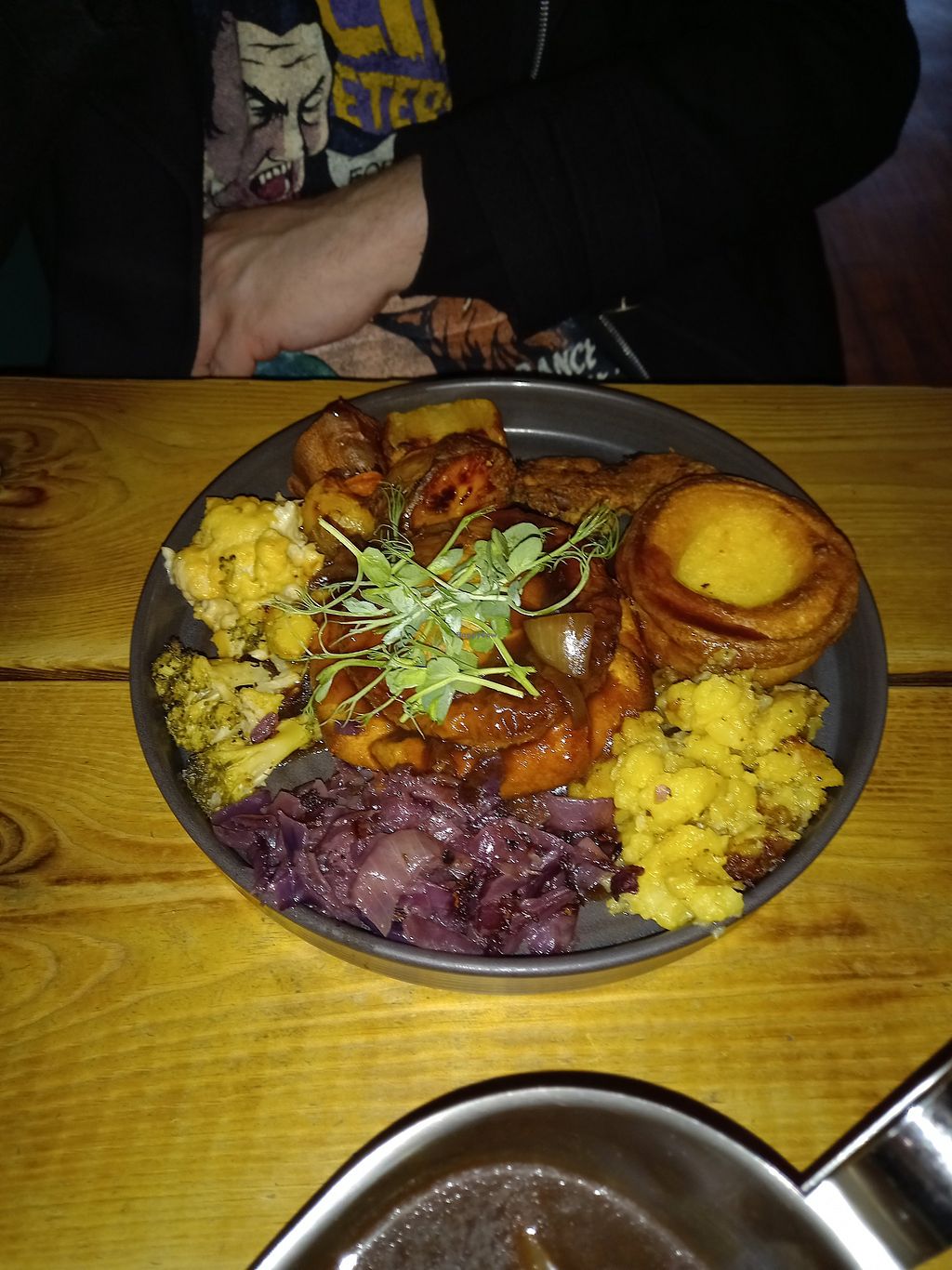 The food was great, the interior was decorated really well and the staff were great. There were pages of vegan options which make a change to normal restaurants and the cakes were also mostly vegan. Close to the station and the centre so easily accessible